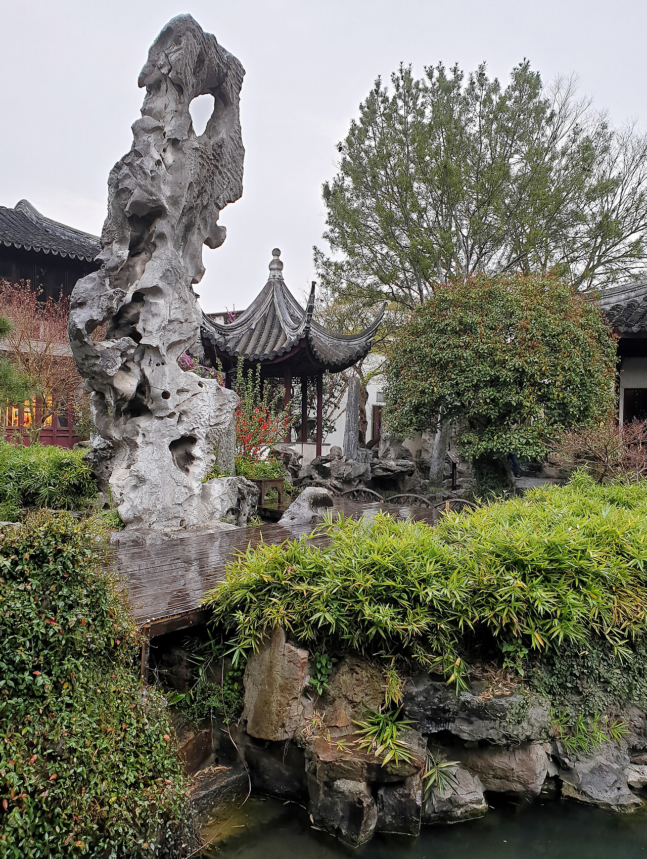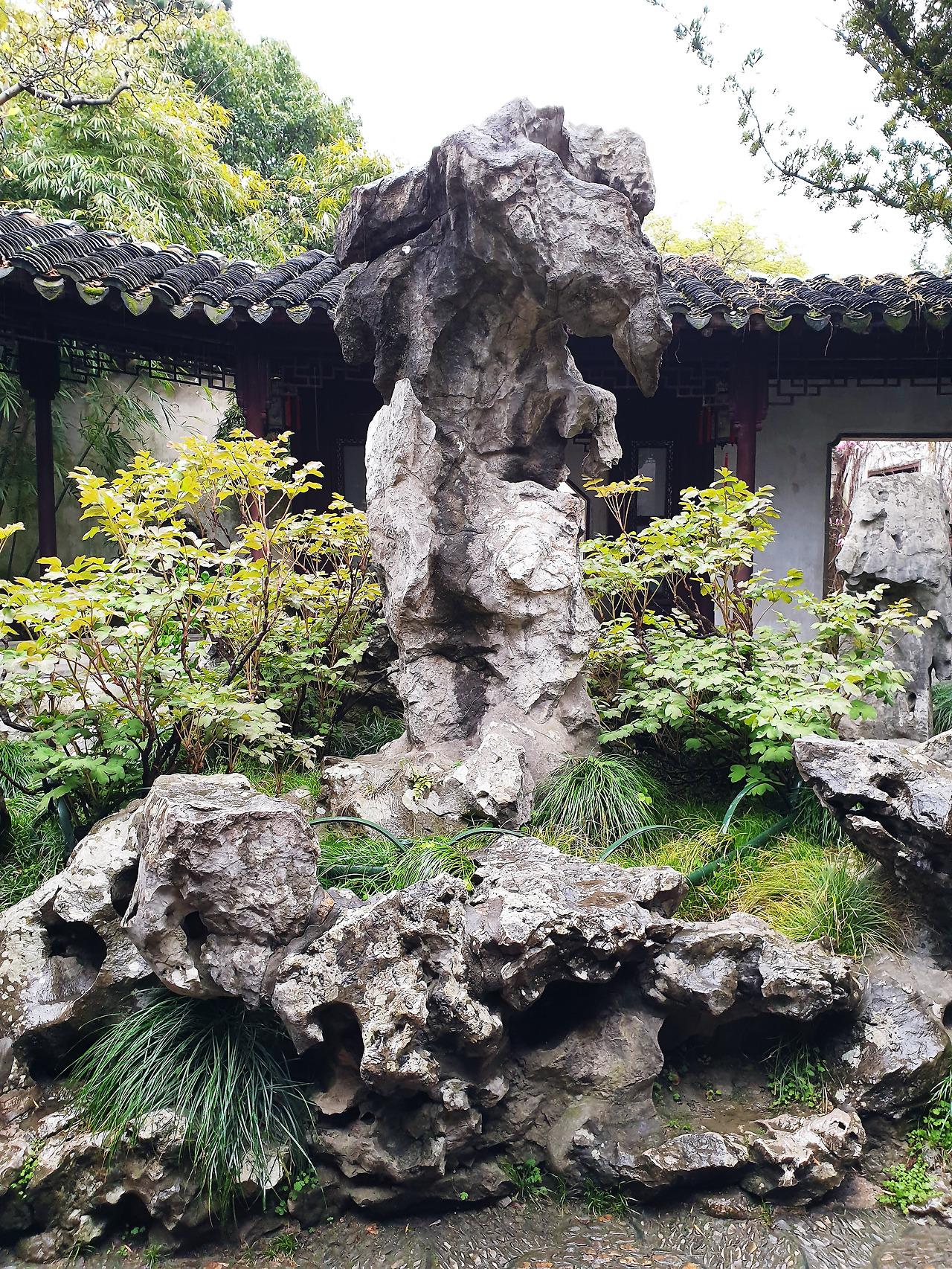 東園 끝 임천기석지관林泉耆碩之館 앞에 있는 관운봉冠云峰은 중국에서 제일 잘생긴 태호석 중의 하나라고 한다. 이름을 알고 보니 구름을 닮은 것 같기도 하다. 사자림에 비할 바가 아니지만, 잘생긴 태호석이 많은 걸 보면 소장자들의 태호석 사랑이 유난했던 것 같다. 유원에 있는 많은 태호석 중 12개의 태호석은 저마다의 이름을 가지고 있는 널리 알려진 것들이라고 한다. 어떤 것은 선인장이나 대나무 같기도 하고 포효하거나 사랑스러운 동물들의 모습 같기도 하다. 관심을 가지고 보면 생각하기 나름이지만 대부분의 태호석에서는 생명력이 느껴진다. 숭숭 뚫린 구멍은 태호석의 아름다움을 가늠하는 요소이다.
