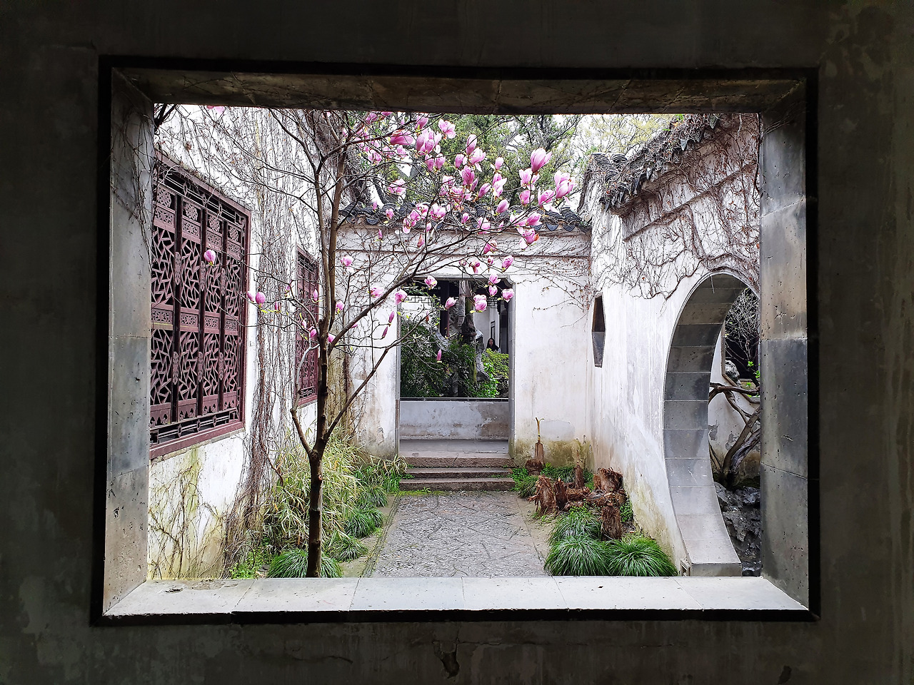 졸정원拙政園보다 작지만 꽤나 넓은 원림은 모든 자연과 계절을 들여놓으려 애쓴 흔적이 역력한, 모든 요소가 들어있는 하나의 방주 같다. 한 프레임에 꽉 찬 명화 속을 헤매다 나온 듯, 콘트라스트와 색조, 균형이 완벽한 네 편의 옴니버스 영화를 감상하고 나온 기분이다.