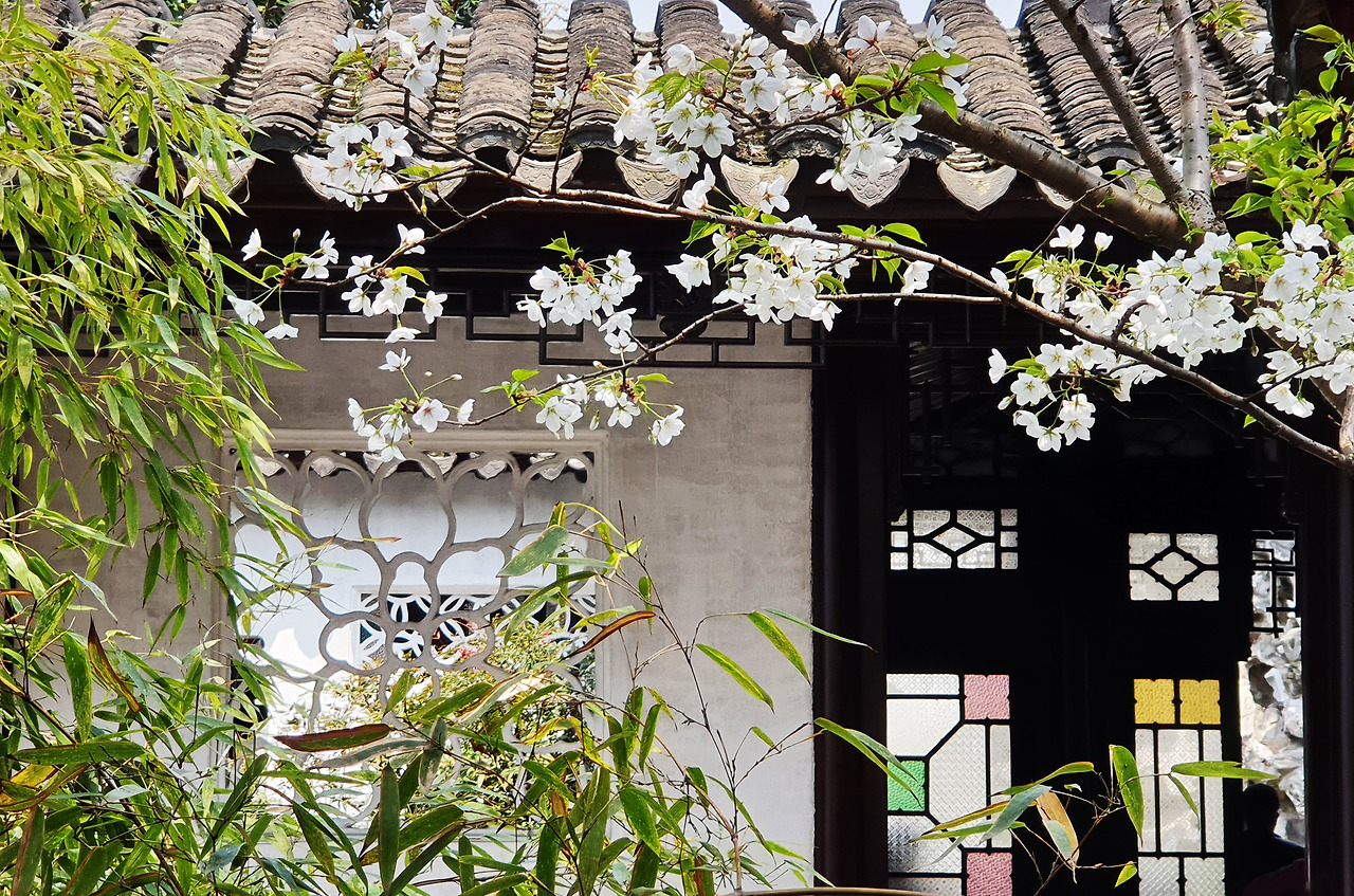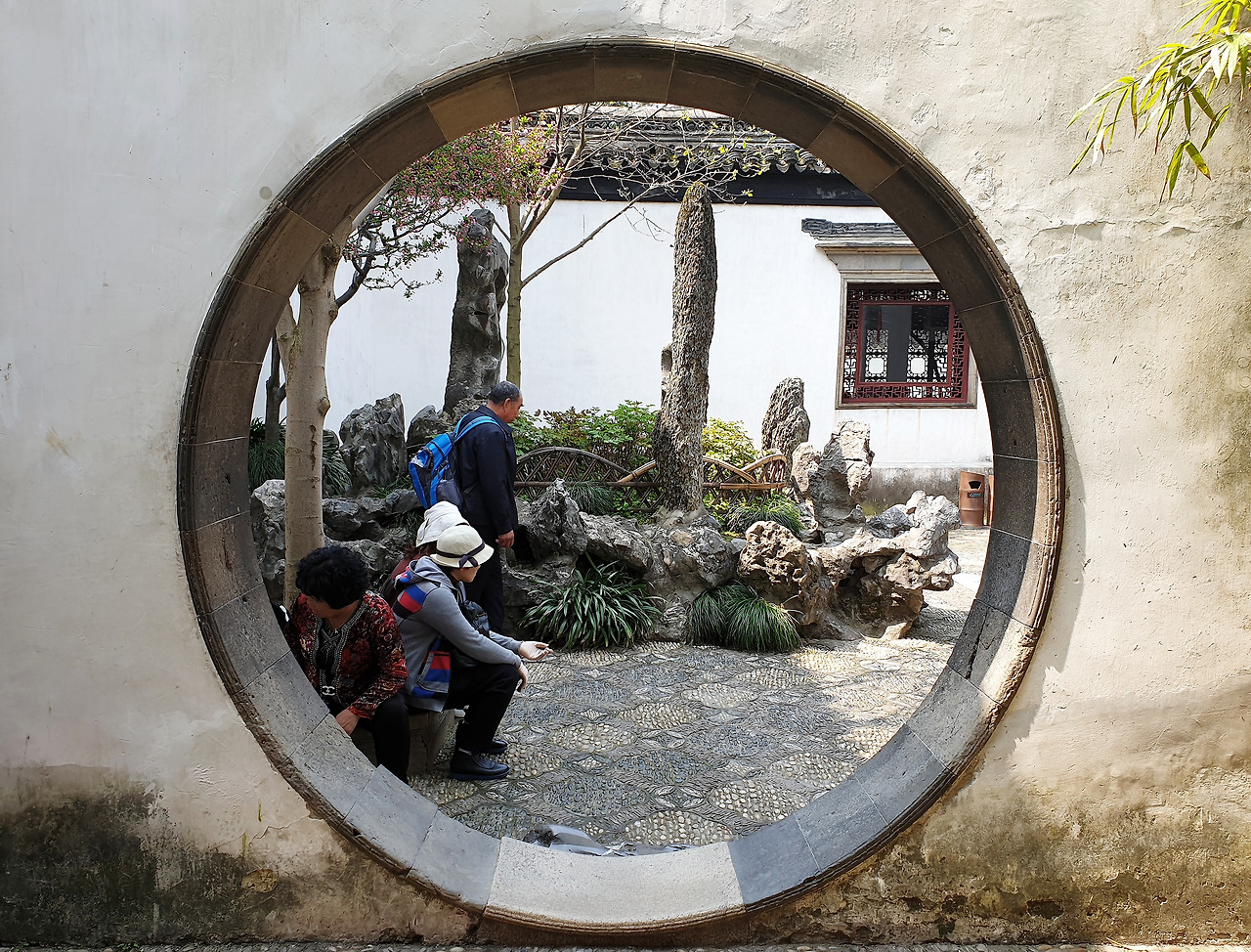 쑤저우 박물관에서 약 150미터, 원림로에 가득한 사람의 행렬을 따라 사자림에 들어간 시간은 오후 1시경이었다. 가까이 있으니 들어간 것이지, 인파를 보고 원림 감상은 이미 의욕을 내려놓았다. 하지만 사람이 많음에도 불구하고 월량문月亮門 안으로 살포시 보이는 풍경은 빨리 들어가고 싶은 마음이 동할 만큼 아름답다.