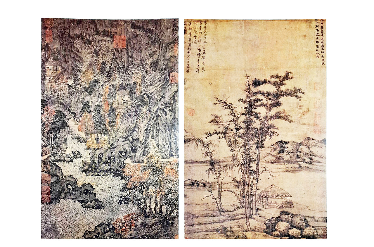 왼쪽은 사자림을 연상케 하는 왕몽의 작품, 오른쪽은 사자림 설계에 관여한 예찬의 작품이다.