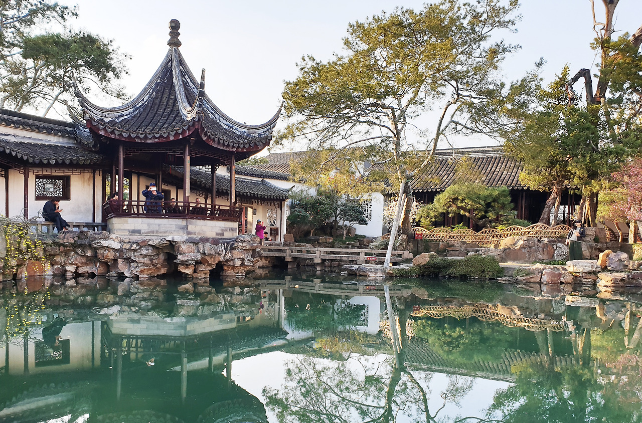 있어야 할 곳에 모든 건축들이 연못을 둘러싸고 있는데, 졸정원에 1/6에 불과한 작은 원림은 아이러니하게도 졸정원의 여유 있는 공간을 닮아있다. 건축이 생각보다 많음에도 작고 예쁜 건물들은 연못가로 향해 있고 북쪽의 간송독화원이나 남쪽의 소산총계헌 등의 건물들은 뒤로 물러나 있는 들쑥날쑥한 배치로 인해 눈에 전혀 거슬림이 없다.