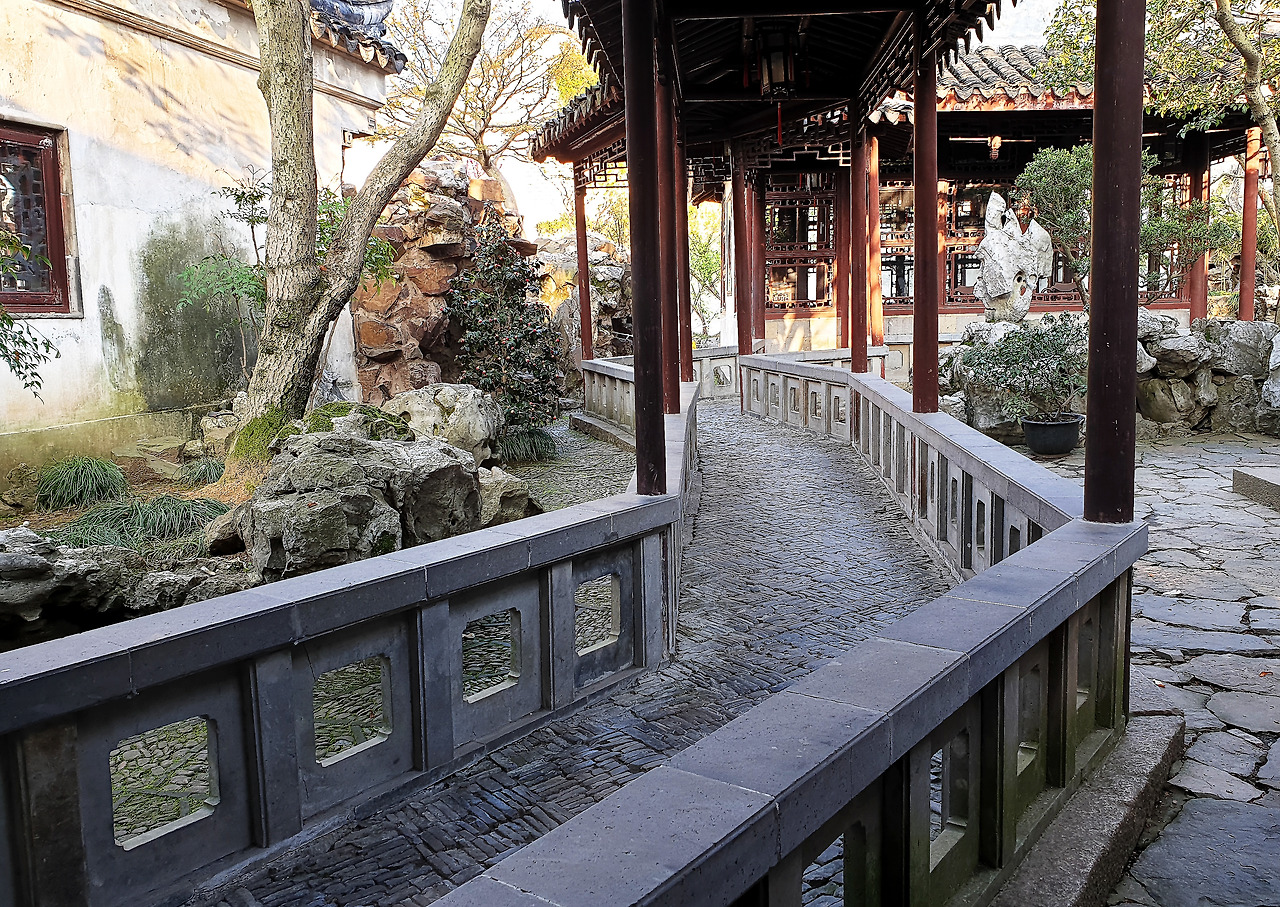 쑤저우에 들어온 날 오후, 느지막이 호텔에서 길만 건너면 위치하는 망사원을 산책하는 느낌으로 다녀왔다. 처음에는 보거나, 관찰한다는 어떤 목적도 없이 가볍게 들어섰다. 늦은 오후 시간, 한낮의 태양은 빛을 잃어가는 순간이며, 사람은 많지 않았다. 도심의 중심 주택가 한가운데 높은 담장 안 차분한 원림 풍경은, 나른했던 몸과 마음을 확 깨도록 만드는 별천지였다. 쑤저우 원림을 처음 마주한 순간이었다.