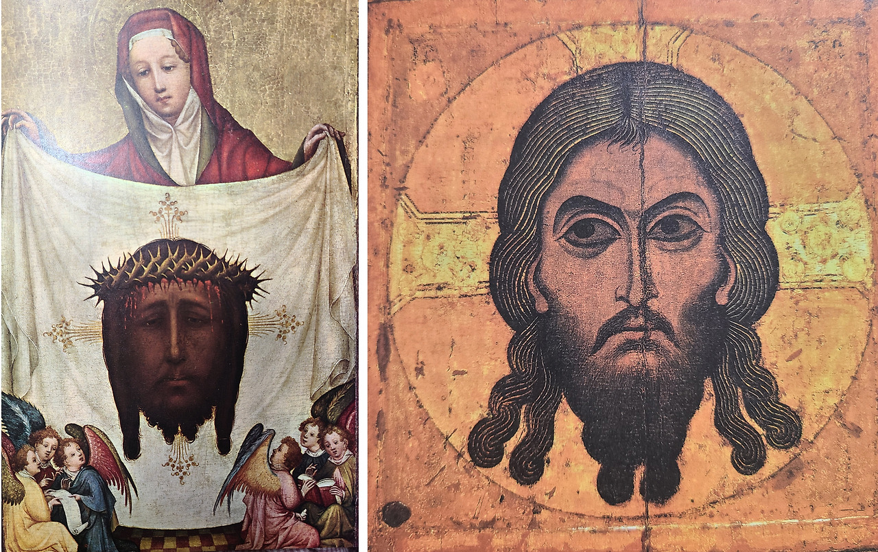 성 베로니카의 천, 1400년 경 쾰른에서 제작, 목판/<손으로 그리지 않은 구세주> 12세기 노브고로드, 트레티야코프 미술관
