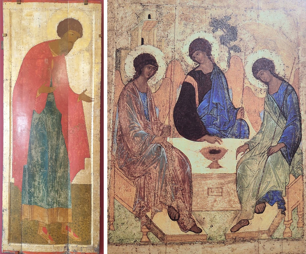 1497년경 제작, 페테르부르크 러시아 미술관(왼쪽 그림)/ <삼위일체> 1420년대 , 루블료프 트레티야코프 미술관