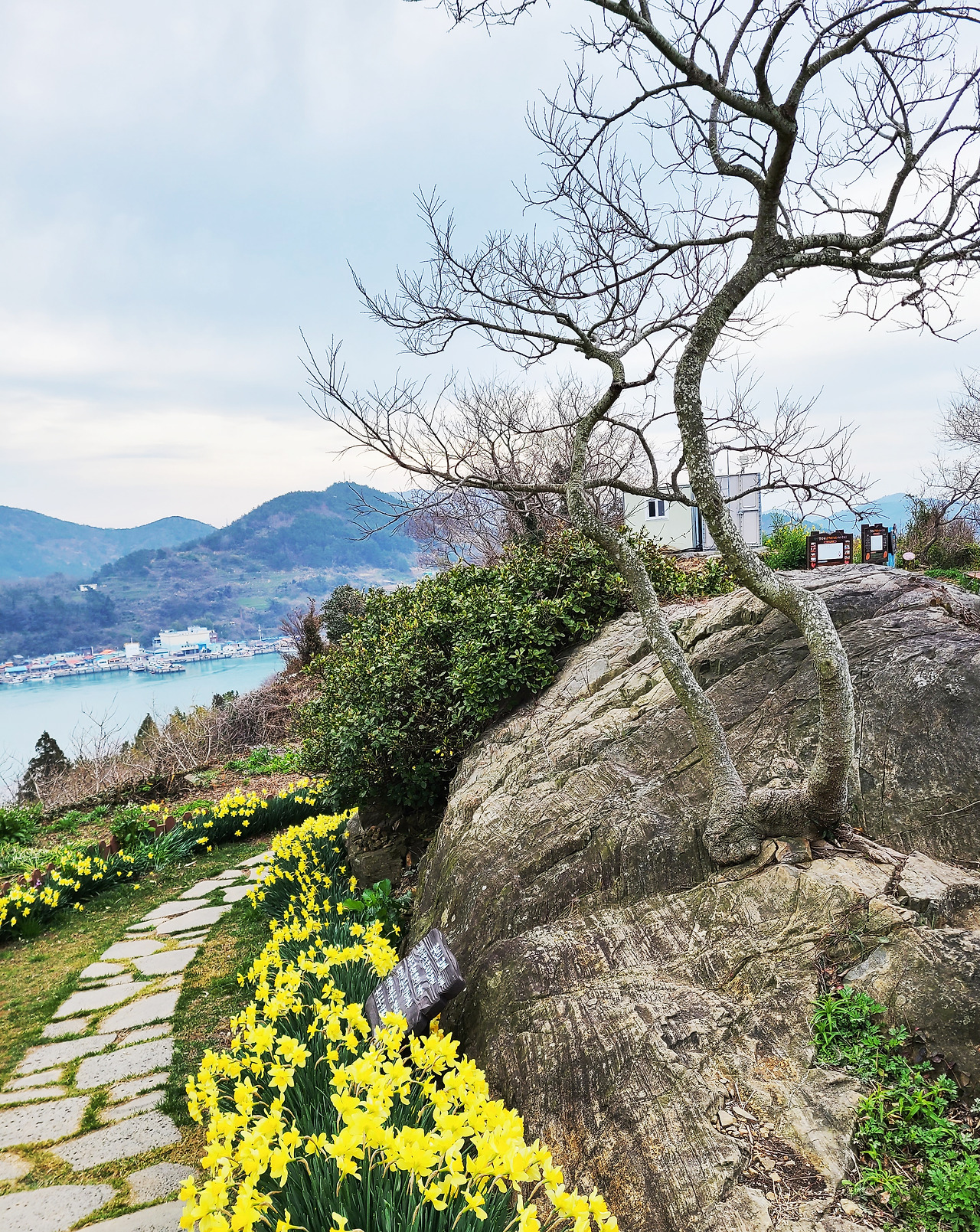 선착장에서 정상에 있는 별 정원까지는 약 1Km 거리에 불과하다. 제법 가파른 당 숲길을 지나 2000년경부터 한 부부가 가꾸기 시작했다는 해발 83m 정상에 있는 별 정원에 다다르면 봄을 알리는 수선화와 유채꽃이 가득하다. 두 사람의 선한 마음은 섬 안의 나무 한 그루, 돌멩이 하나에도 닿아있다.