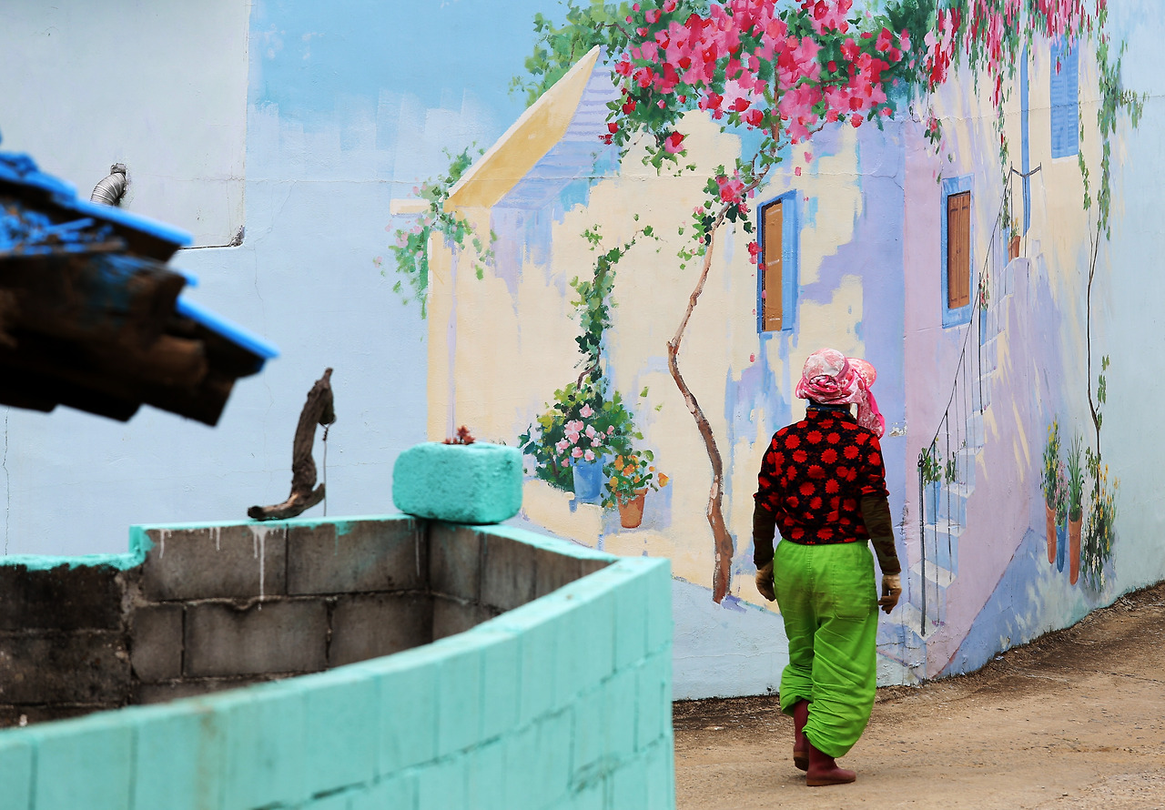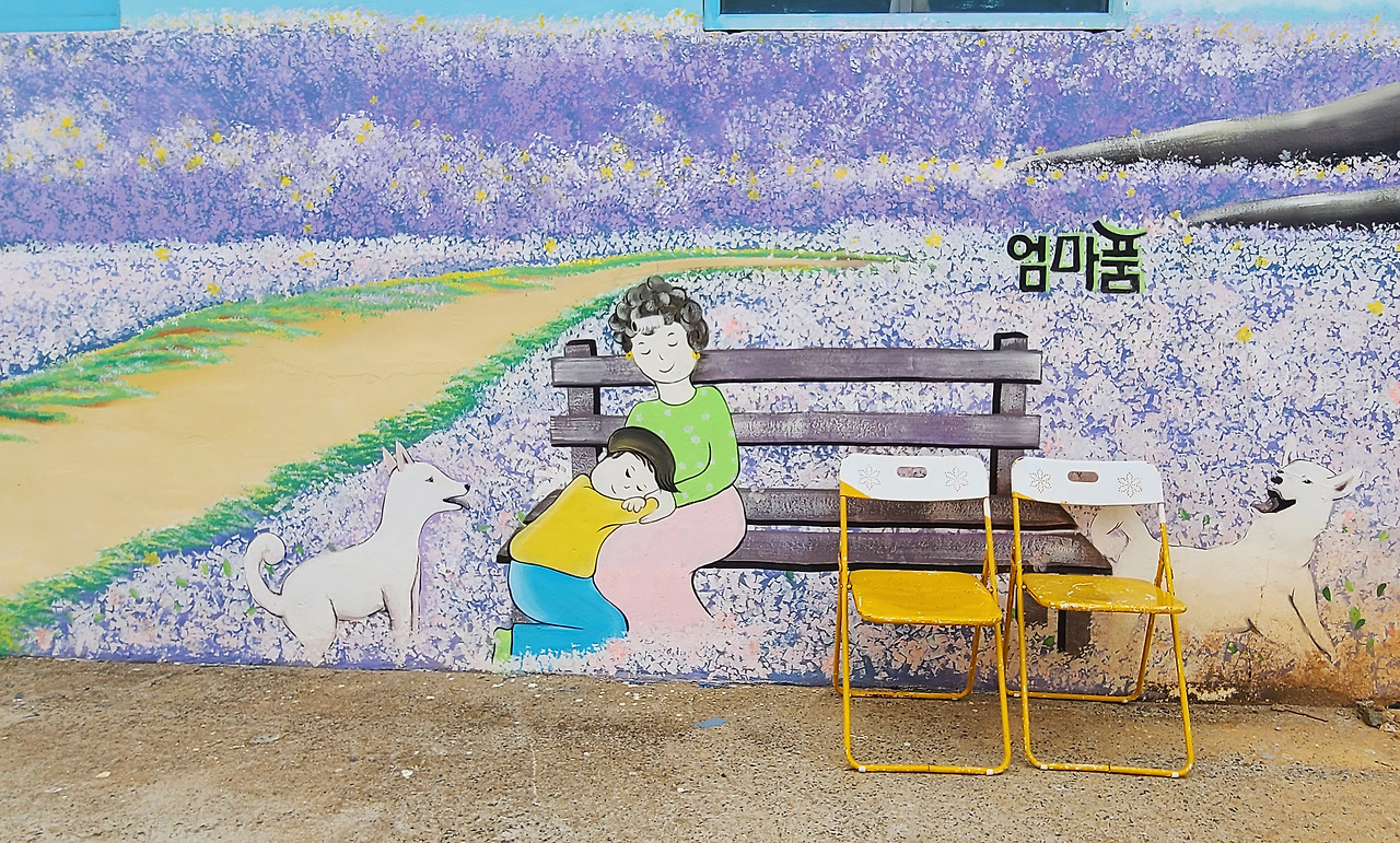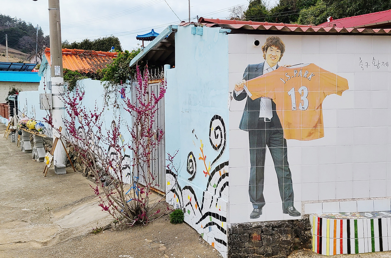 들어오는 이들의 발열체크를 하는 것부터 전부 주민들이 나선다. 섬의 분위기는 입구부터 진짜 살아있는 미술관이다. 마을의 역사 사진 벽화를 보고 왼쪽 길로 접어들었다. 친근한 국민 선수 박지성이 자신의 등 번호 셔츠를 들고 활짝 웃고 있고, 주민들의 얼굴도 있고, 동화 같은 엄마 품 벽화 앞에서는 울컥한 마음이 앞선다.