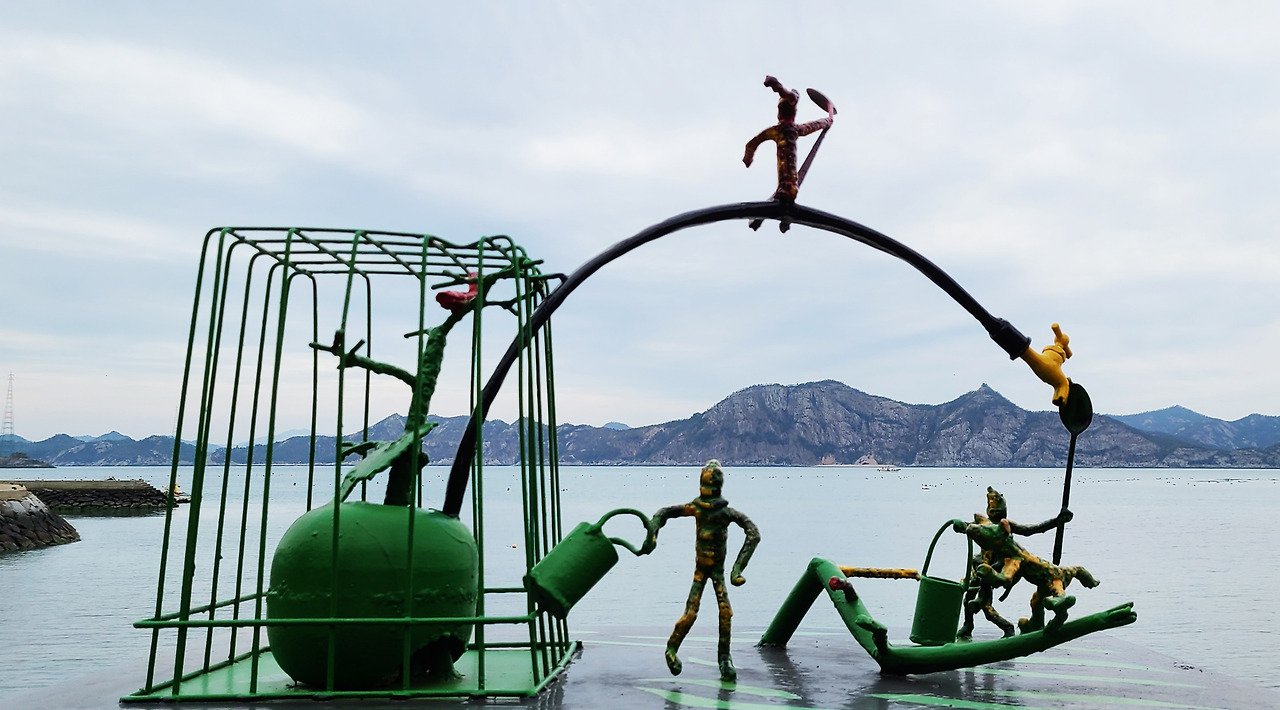 마을을 두 시간 가까이 돌고 나가는 길에 배를 놓칠까 봐 바쁜 마음 중에 40, 50대로 보이는 긴 장화를 신은 한 무리의 아저씨들을 보았다. 수거한 바다 쓰레기를 자루에 담고 있었다. “주민들이 깨끗한 마을을 유지하기 위해 공을 들이는구나” 생각하면서 지나쳤다. 2시 30분 출발하는 배를 타기 위해 점점 급하게 걷고 있는데 쓰레기를 수거하던 아저씨들도 열심히 걷는 내 뒤를 따라온다. 배를 타고 나서야 그들은 이 마을에서 나고 자랐지만, 다른 곳에서 생활하고 있는 분들이라고 짐작했다. 주기적으로 마을에 들어가 마을 청소를 하고 나오는 거였다. 이들이 좁은 주차장을 빽빽하게 만들었던 주범들이었다. 휘리릭, 각자의 차를 타고 가는 그들의 등 뒤에서 이유 없이 그들이 부러웠다. 학교 앞 호수 같던 바다에서 물장구치며 깔깔거리던 소년들의 웃음소리가 들려왔다.