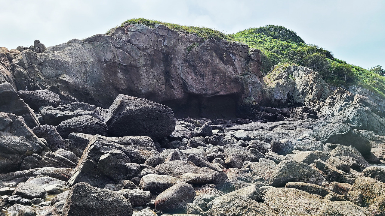 토끼섬으로 들어가는 길은 바위들에 작은 조개류들이 빼곡하게 붙어있어 꽤 거칠며 미끄럽다. 들어오는 배 안에서 토끼섬 해식와의 사진을 찍었었는데, 정작 가까이 와서는 직접 자세히 들여다보기가 나갈 생각에 마음이 바쁘다. 간혹 토끼 섬에 들어가서 못 나오고 해경에게 구조되는 일도 생긴다고 한다. 해식동굴도 꽤 깊고 넓다. 빗줄기나 햇살을 피하기도 좋겠다.