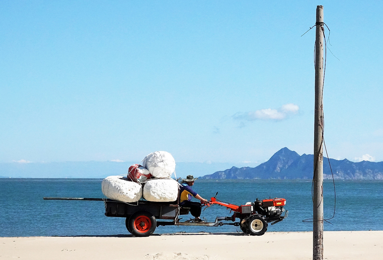 텅 빈 공간인 하늘과 해변을 배경으로, 짐을 실은 트랙터 한 대가 지나간다. 트랙터를 따라가는 내 눈에 포착된 것은 트랙터 뒤에 실린 스티로폼으로 만들어진 둥글고 하얀 부표 몇 개와 쓰레기를 담은 포대다. 트랙터는 오는 길에 봤던 분리수거 야적장으로 갈 것이다.