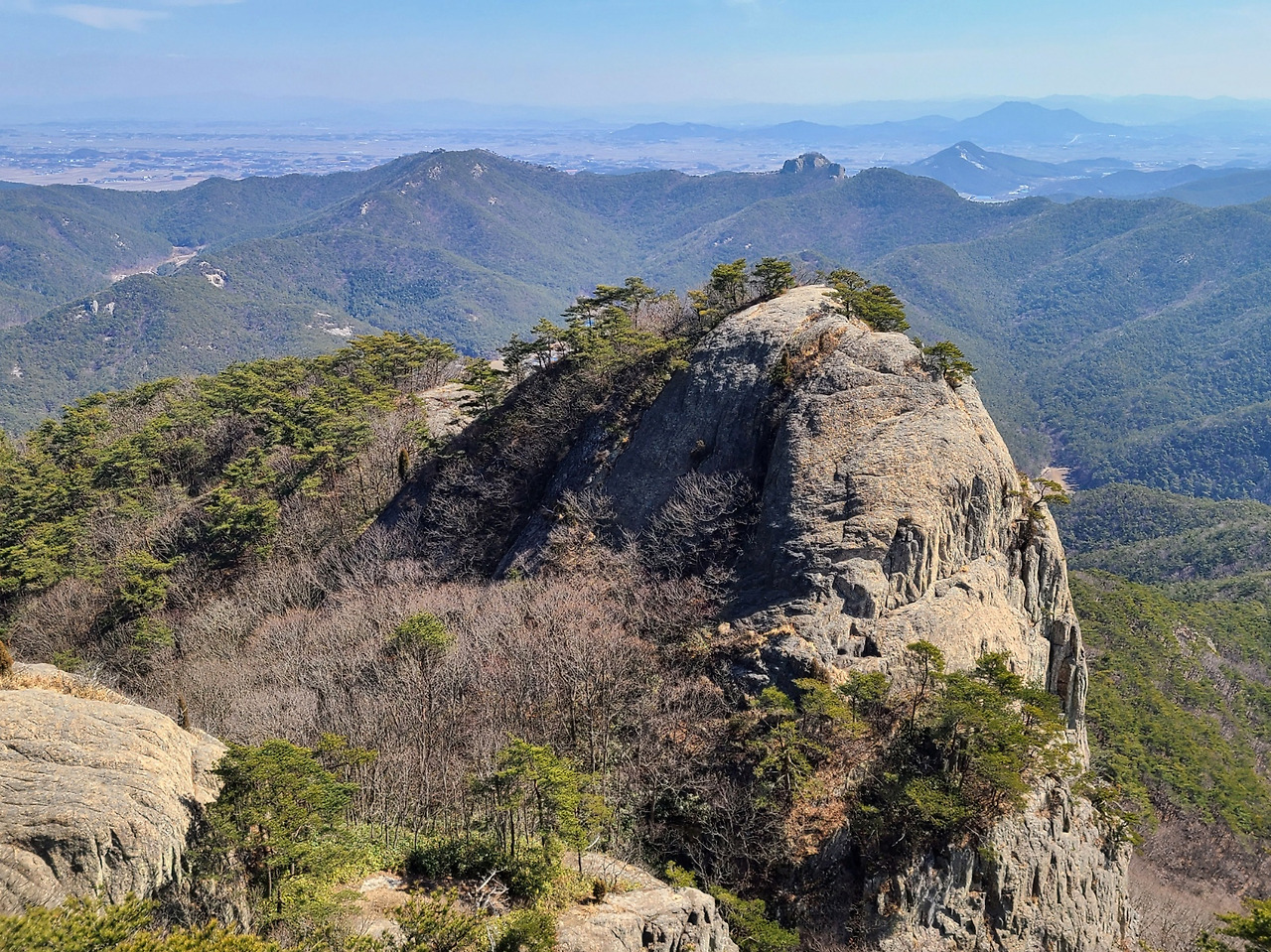 동쇠뿔봉, 멀리 특별히 돌출된 곳이 우금산이다.