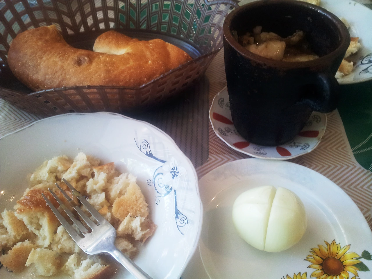 커다란 빵에 양고기와 헤이즐넛콩을 넣고 찐 작은 항아리가 나온다. 어떻게 먹어야 할지 멈칫거리니 일하는 청년이 순서대로 먹는 방법을 알려준다. 먼저 접시에 빵을 잘라 놓고 그 위에 국물을 부어 빵을 적신다. 국물로 적신 빵을 먹고 나면 남은 항아리의 고기와 콩을 접시에 담아 수저로 짓이겨서 마치 참치와 마요네즈를 비비듯이 걸쭉하게 만든다. 이것을 남은 빵 위에 얹어서 먹는데 더운 여름에 먹어도 좋은 단백질이 풍부한 영양식이다.