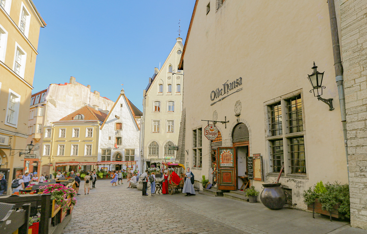 호텔 이비스센터 앞 정거장에서 구시가지가 있는 비루Viru게이트까지는 트램으로 약 5분 거리이다. Viru가 맥주를 뜻한다고도 하지만, Viru는 오래전 에스토니아 북동부에 있는 부족 국가였던 Virumaa에서 유래했다. 에스토니아에서는 Viru가 붙은 지명이 꽤 있다. 14세기 중반에 건립한 비루게이트는 툼페아Toompea 언덕을 둘러싼 성벽과 연결되어 있으며, 성안으로 들어가는 문 중의 하나였다. 양쪽에 주황색 고깔을 쓴 두 개의 탑으로 이루어진 비루게이트를 들어가면 탈린이 번영했던 당시의 모습을 엿볼 수 있다. 이곳은 원래 주민들의 거주지였던 곳에 13세기경 덴마크 이민자들에 의해 건설되었다. 도시는 한마디로 중세 박물관이다. 창문이 작아 비율이 더욱 왜곡돼 보이는 15세기에 지어진 시청사 건물을 지나 구시가지의 골목길로 접어들면, 특히 14, 15세기에 번영했던 Hansa(친구, 동료를 뜻하지만 여기에서는 독일 뤼베크에서 시작된 상업 동맹 도시) 도시의 분위기가 넘친다. 중세를 상징하는 달그락거리는 갑옷의 기사와 독일인 상인들이 들락거렸던 사무실은 호텔, 레스토랑, 기프트샵, 카페, 박물관, 대사관 등으로 변했다. 성안에는 분홍빛 건물인 에스토니아 의회와 각종 정부 기관까지 빼곡하게 들어서 있어 이곳은 현재도 여전히 에스토니아의 중심이다.