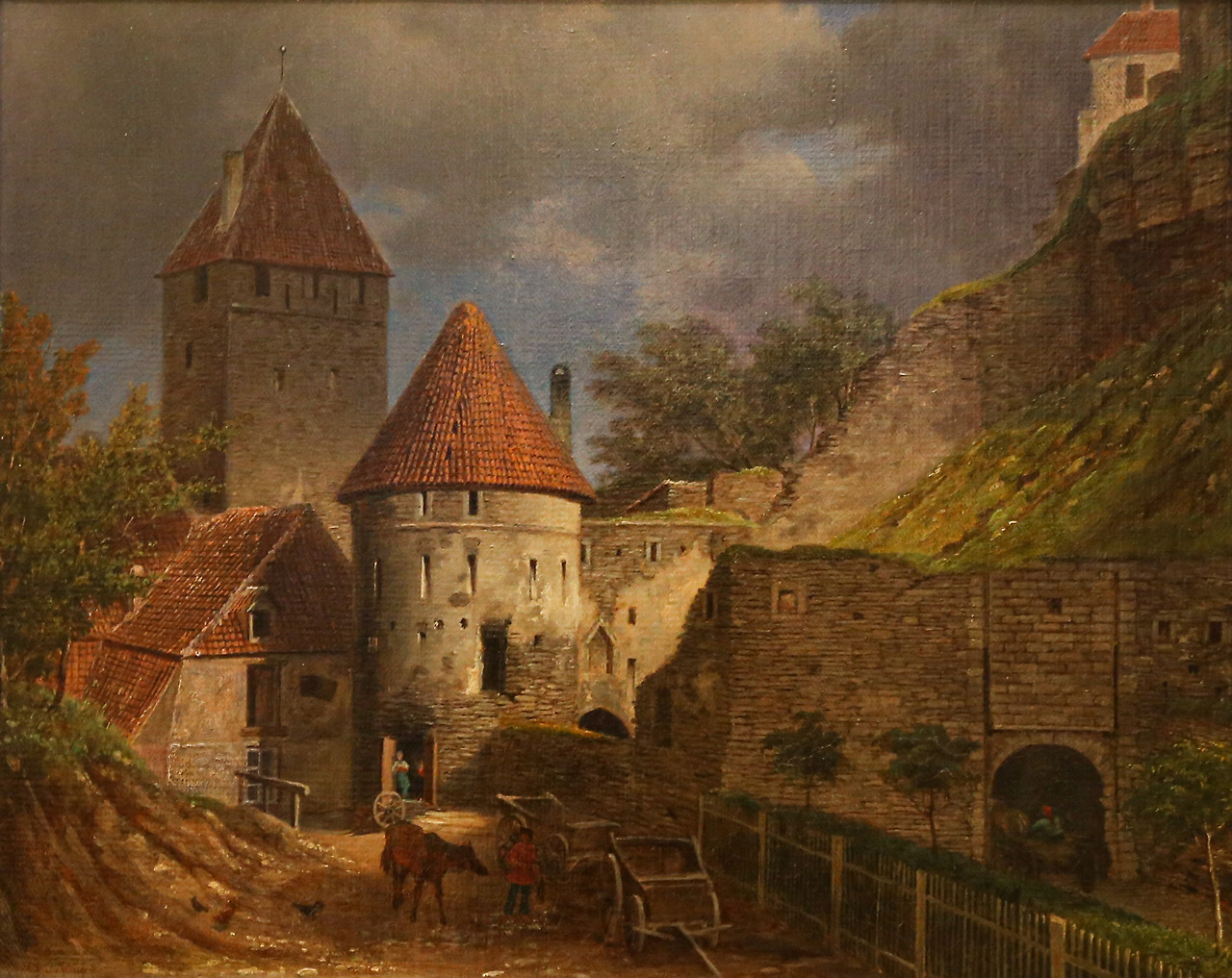 Old Stagecoach Station at Nunne Gate in Tallinn 1865, Ernst Hermann Schlichting(1812~1890)