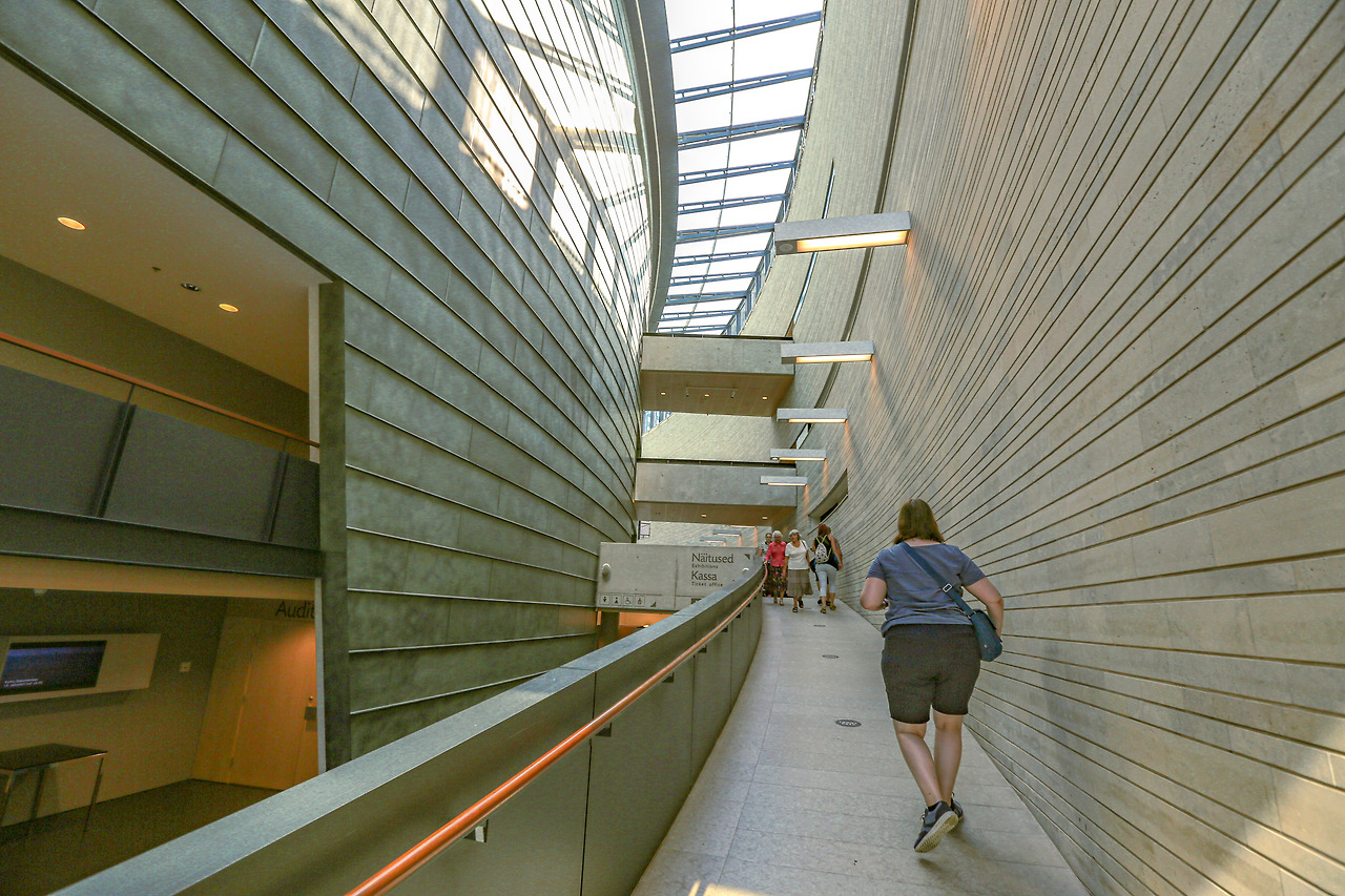 카드리오르그 미술관은 약 1시간가량이면 돌아볼 수 있는 작은 미술관이지만 미술관 정원이 아름다워 볼거리도 많다. 공원이 넓어 이동 거리도 꽤 멀다. 쿠무 미술관에 도착했을 때는 12시 30분이 넘어가는 시간이었다. 혹시 점심시간에 휴관을 하면 어쩌나 했지만 매표창구에 사람이 있어 표를 구입할 수 있었다. 쿠무 미술관은 에스토니아에서 가장 규모가 큰 미술관으로 대부분 18세기부터 현재까지 활동한 에스토니아 작가들의 작품을 전시하고 있다. 간결하고 세련된 인상적인 외관은 마음까지 가볍게 만들어준다.