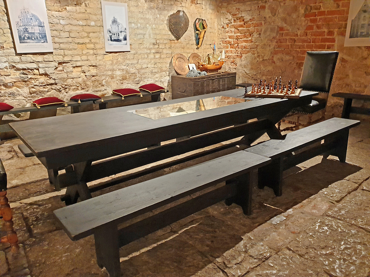 검은머리 전당의 지하실, 14세기경 벽과 바닥, 심지어는 나무계단까지 당시 리가의 건축이 남아있는 몇 안 되는 장소이다.