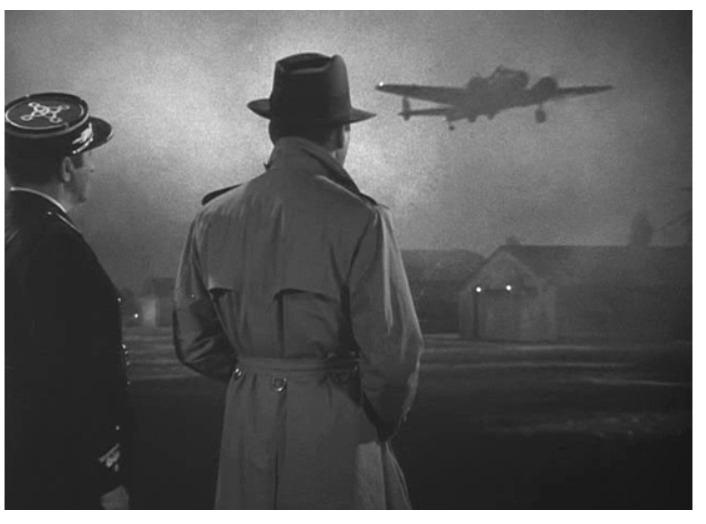 공항에서에 릭, 르노서장의 도움으로 두 사람을 떠나 보낸다./ 다음영화에서 캡처