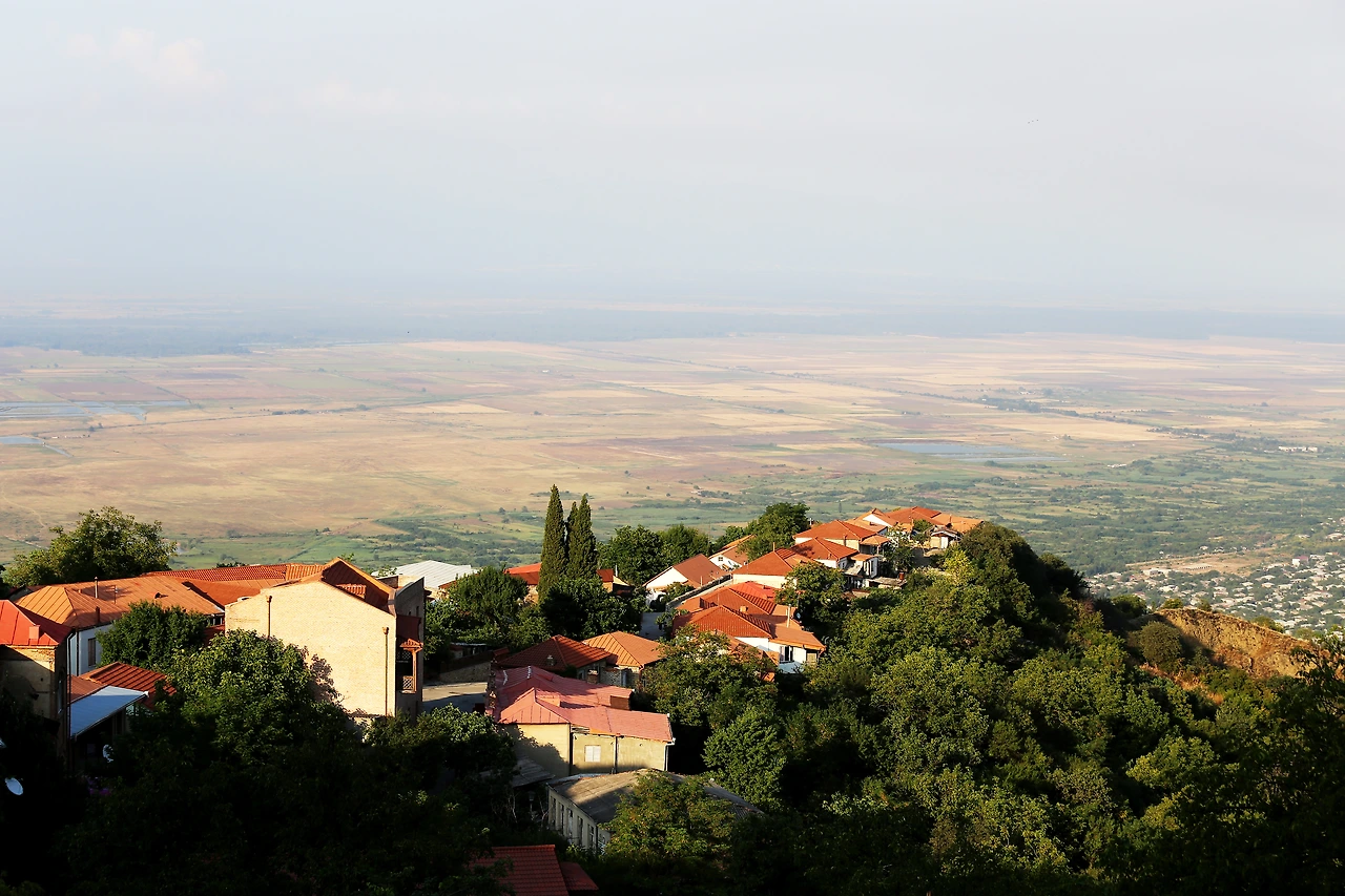 한 참을 걷다가 시그나기 읍내에 접어들 즈음, 퐁퐁 나는 굴뚝 연기에 이끌려 작은 레스토랑에 들어갔다. 조지아 어디에서나 볼 수 있는 포도덩굴이 집을 타고 올라온 전형적인 조지아주택을 개조해 만든 레스토랑이다. 시그나기의 전경이 한 눈에 들어온다.
