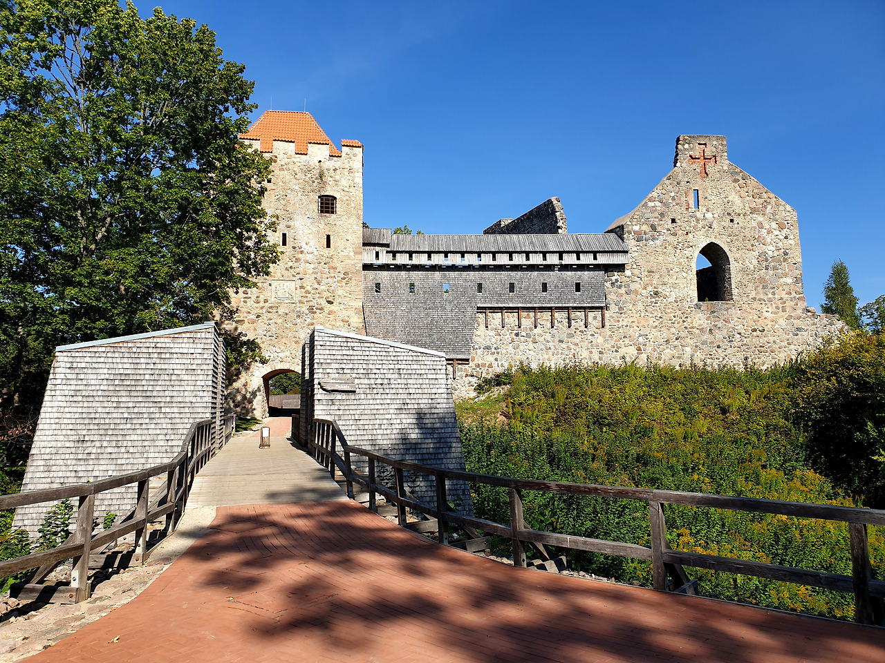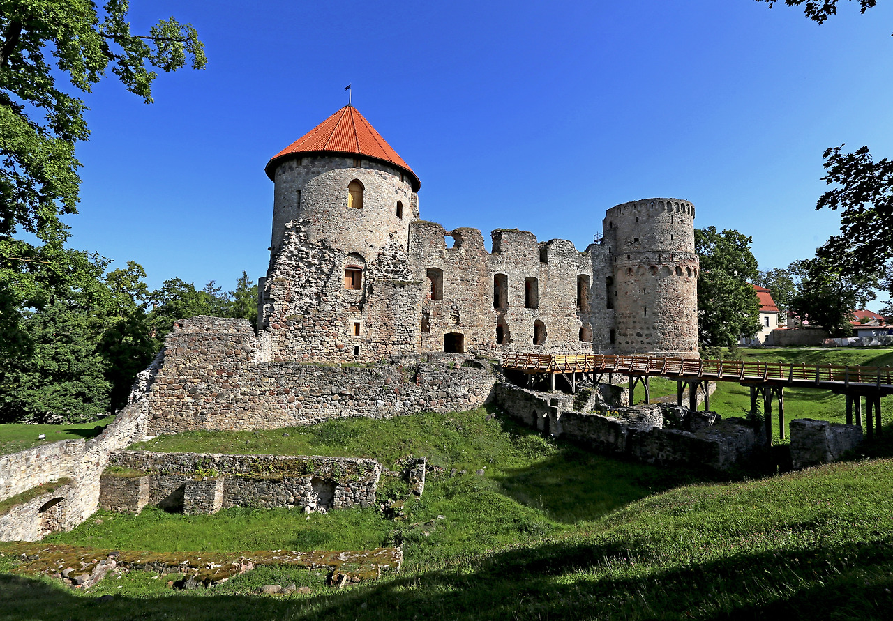 기차역에서 약 900미터, 골목의 끝에 체시스 성이 있다. 라트비아에서 가장 잘 보존된 중세 성 중 하나인 Cēsis Castle(1214년 경) 은 리보니아 검의 형제 기사단 Livonian Brothers of the Sword이 세웠다. 투박한 두께를 한 성의 벽체 위에는 주황색 둥근 고깔 모양의 지붕이 얹어있다. 성으로 들어갈 때는 해자에 걸린 다리를 건너야 한다. 누구나 알고 있는 전형적인 중세 성의 모습이다. 전통 의상을 입은 아주머니는 관람객이 안전하게 관람할 수 있도록, 촛불이 일렁이는 등을 하나씩 건네준다. 독일인 십자군이 만든 성안에서 짧지 않은 그들의 아픈 역사 이야기를 보고 나왔다. 중간에 나올 수도 있었지만 담담하게 들려주는 그들의 조상이야기를 들어주고 싶었다.