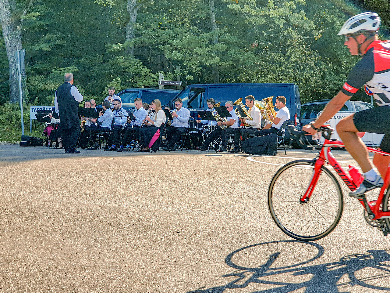 레이서를 반기는 연주/ 피니시 지점에서 레이서들을 기다리는 주민들