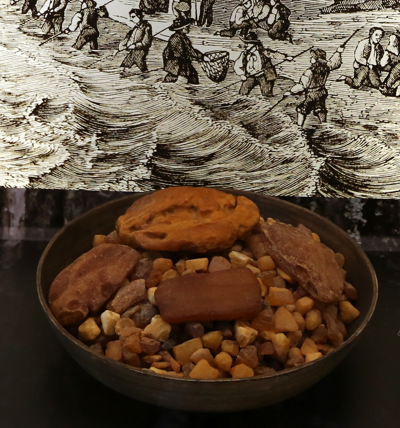호박을 채취하는 장면을 그린 일러스트는 호기심을 불러일으켰다. 그림에서 사람들은 얕은 바다나 해안에서 호박을 줍거나 배를 타고 물고기를 잡듯이 호박을 뜰채로 건져 올리고 있다. 발트의 바닷가를 거닐다가 때로는 호박을 줍기도 한다는 말은 사실이었다. 호박의 비중이 낮기 때문에 가능한 일이다.
