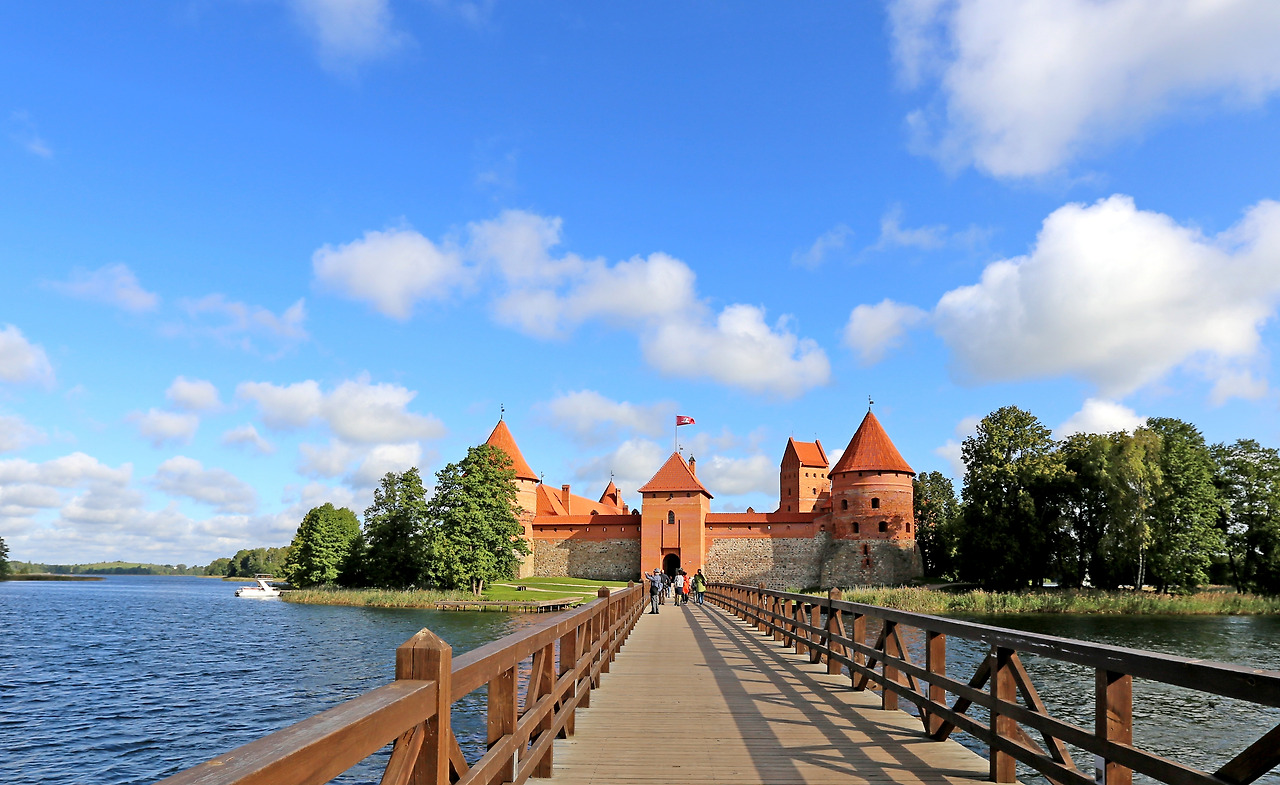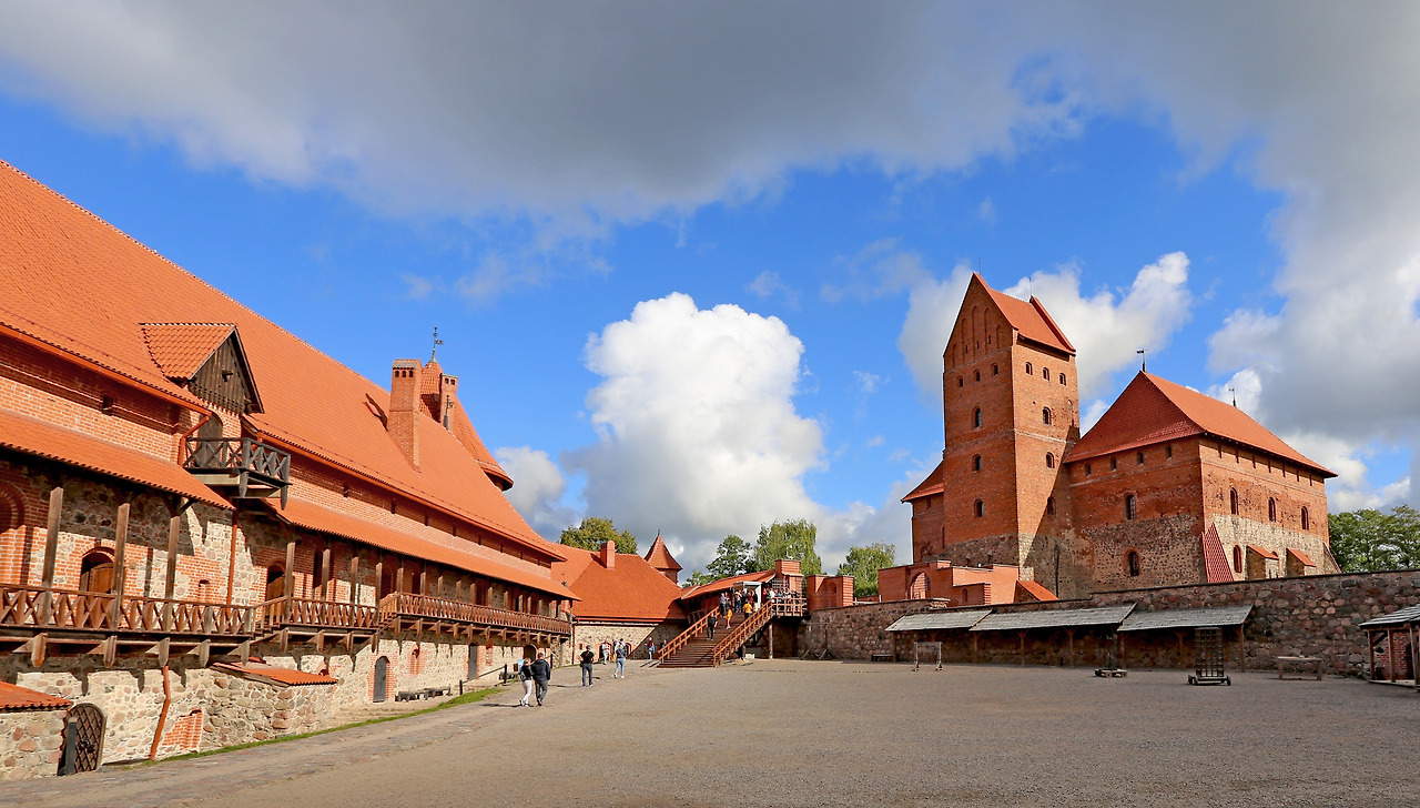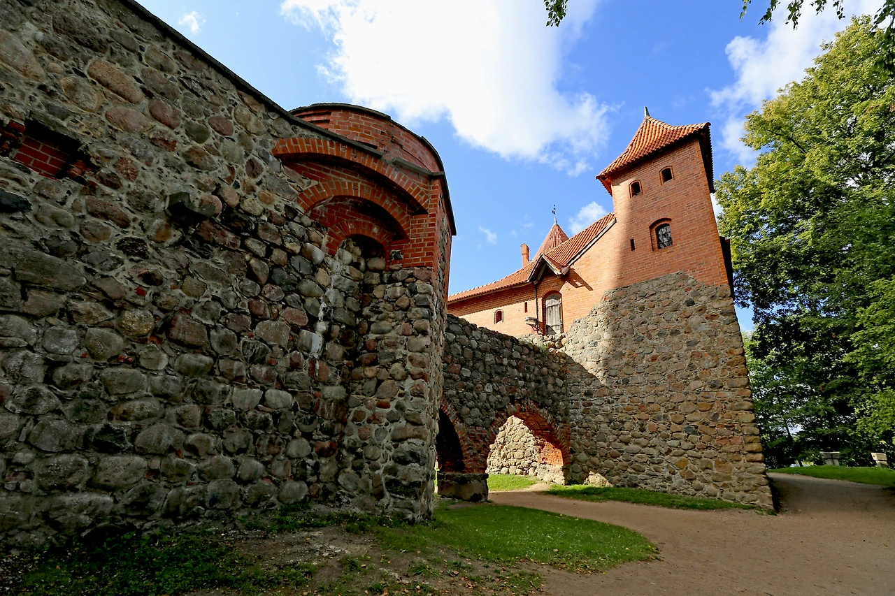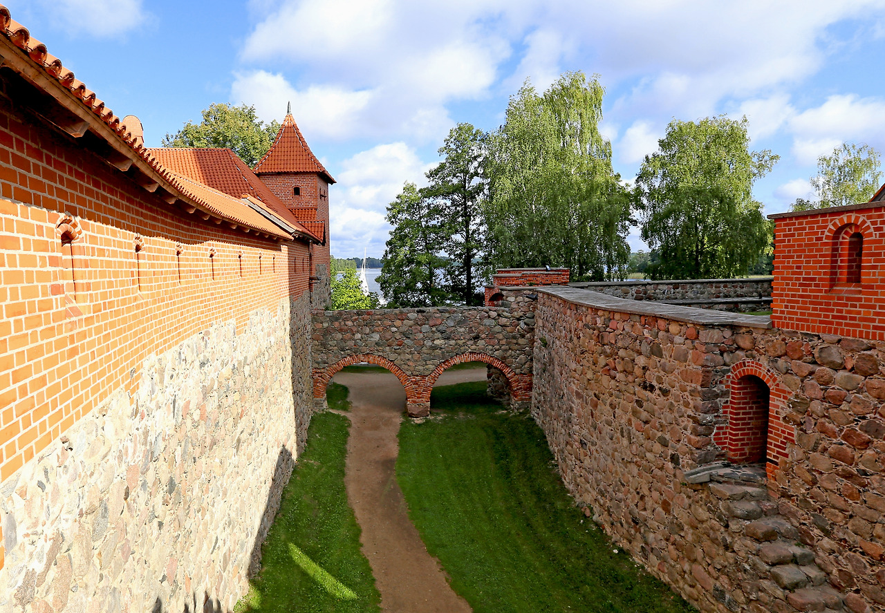 주황색에 가까운 성의 붉은 고깔지붕은 풍성한 구름 아래서 더욱 아름답다. 두 개의 섬을 연결하는 나무다리 하나를 건너면 비타우타스 대공이 방문자를 맞이한다. 트라카이 성 Trakai Island Castle은 'ㄴ'자 모양의 외성과 방어요새로서의 탁월한 구조를 지닌 내성으로 이루어져 있다. 적이 외성까지 들어갈 수는 있지만 내성으로 접근하기에는 꽤 어려워 보인다. 내성으로 어렵게 들어간다고 해도 내성의 안뜰에 갇혀버릴 수도 있는 구조다. 현재는 역사박물관으로 사용되는 비타우타스 대공이 살았던 내부에 들어가면 켕스투티스와 아들 비타우타스의 아름다운 스테인드글라스를 만날 수 있다.