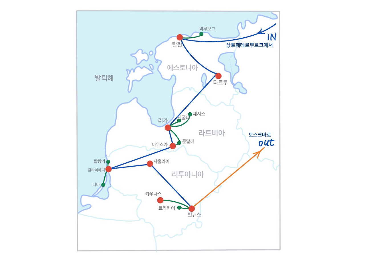 발트에는 평지만 있을 뿐, 올라가거나 감탄할 만큼 높거나 거친 산이 거의 없다. 그러므로 이곳을 방문하기 위해서는 특별한 마음가짐이나 튼튼한 트레킹화도 필요하지 않다. 편안한 옷차림과 운동화만으로도 족하다. 자연과 사람은 너무나 닮아있어서 이곳 사람들은 이상하리만큼 뾰족하지 않다. 그렇다고 둥근 것도 아니어서 이방인을 과하게 환대하거나 내치지 않는다. 타인에게 특별한 시선을 주지 않는 이들의 무심함은 여행자에게 무한한 자유로움을 안겨준다.