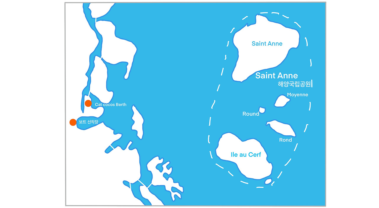 선착장에서 약 4.5킬로미터 배를 타고 달리면 여러 개의 섬이 있는 성 안느 해양국립공원에 닿는다. Turquoise(터키석 색깔)와 light sea green(청록빛보다는 투명한) 색깔이 찰랑이는 물빛 사이로 녹색의 작은 섬들이 떠올랐다 내려가기를 반복한다. 성 안느 해양국립공원은 6개(아주 작은 섬까지 합하면 8개)의 작은 섬으로 이루어져 있다. 이곳의 섬들이 국립공원으로 지정되기 전에는 수도 빅토리아와 가까운 이유로, 정부가 관리하는 여러 혐오 시설(예를 들면 교도소와 검역소, 나환자촌)이 들어서 있었다.