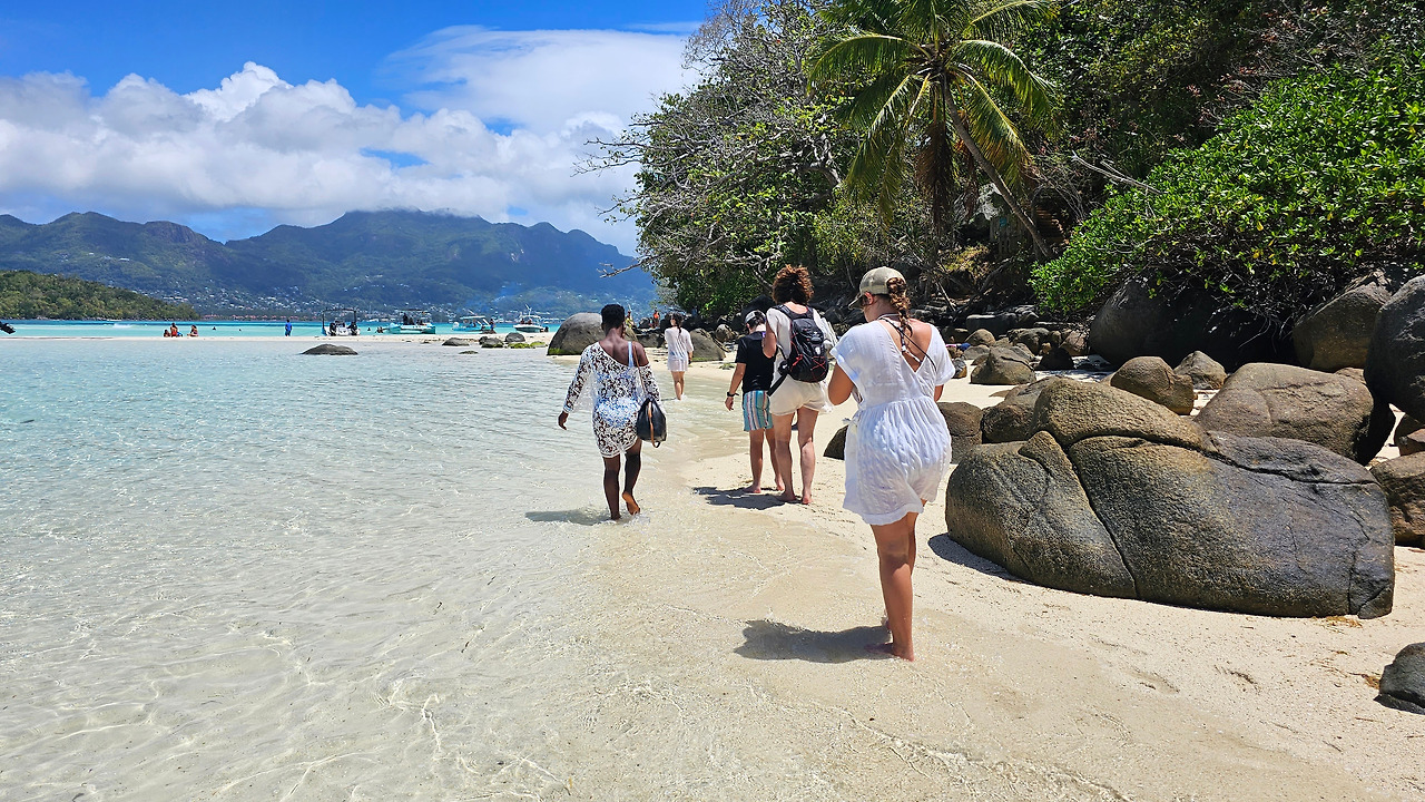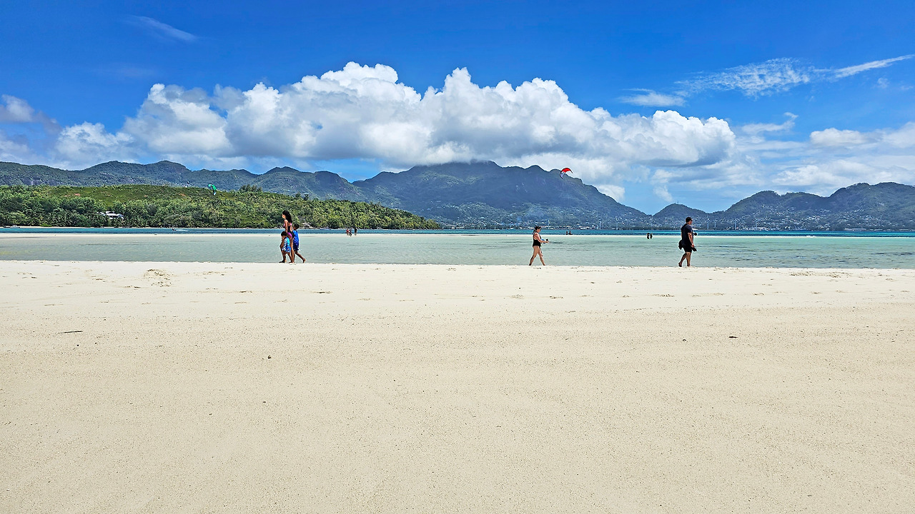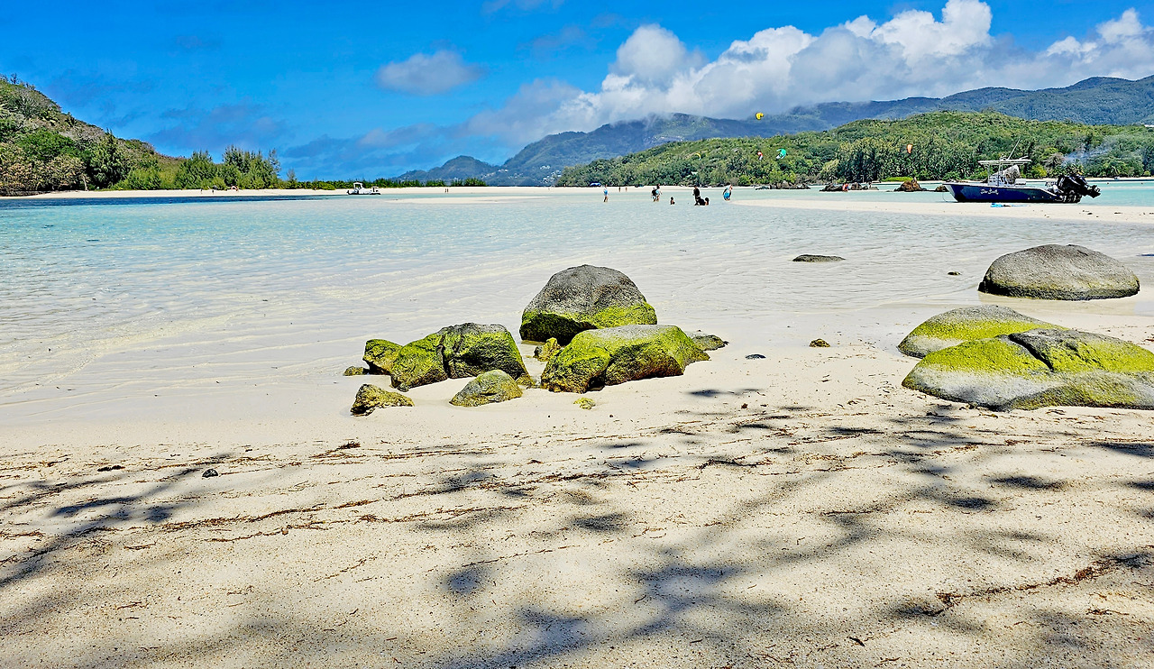 Lond 섬과 Round 섬 사이의 모래톱이다. 뒤에는 Cerf 섬이 보이며 더 멀리 보이는 것은 마에 섬이다.