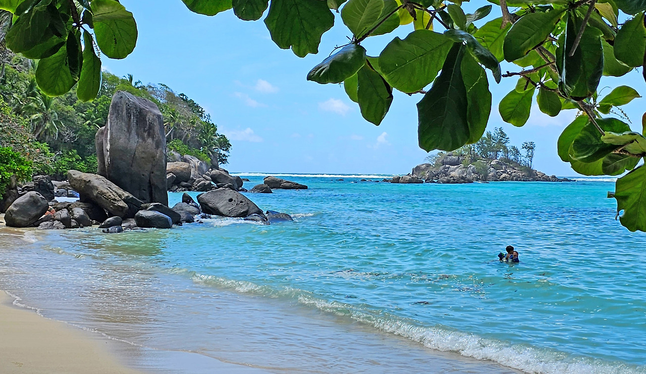 퍼블릭 버스는 빅토리아가 종점이며 마에섬 일주도로를 운행한다. 버스는 주말이면 마에 섬을 둘러싼 해변을 가기 위한 사람들로 만원이라고 한다. 어디에서나 내려도 아름답고 안전한 해변이 널려있으니 말이다. 앙스 후와얄르 Anse Royale 작은 해변에 내렸다. 세이셸 사람들은 언제라도 바다에 뛰어들 준비를 하고 사는 사람들처럼 세이셸의 바다를 사랑하는 것 같다. 가족이 즐기는 바다풍경은 감미롭다.
