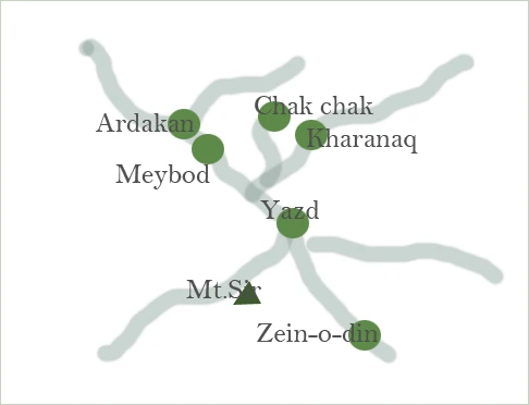 북으로는 카비르 사막 남쪽에는 루트 사막인 야즈드 주변에는 캐러밴사라이로 발달된 도시들이 많다 중요한 교역지이며 경제의 중심지였던 야즈드로 모이면서 사방으로 캐러밴사라이 마을이 생겨났다.