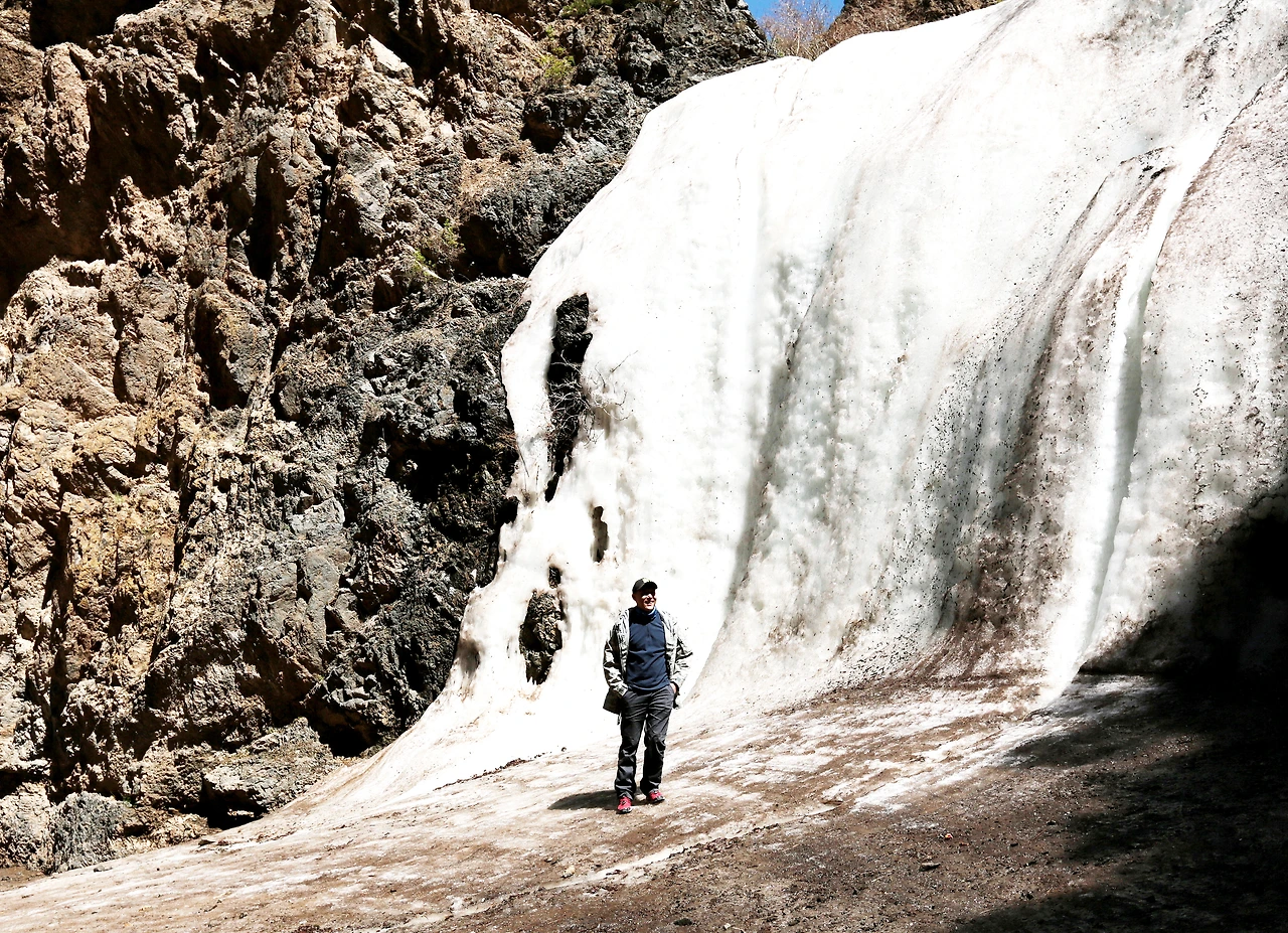 욜링암계곡 가까이 들어간 또 다른 계곡의 폭포도 폭포자체가 그냥 얼음이다. 영상 40도가 넘어가는 땅 속도 아닌 땅 위에, 여름까지 얼음이 남아있다는 것은 놀라운 일이다. 아무리 첩첩한 절벽이 따가운 햇살을 막아주고, 계곡의 바람이 요술을 부린다고 해도.