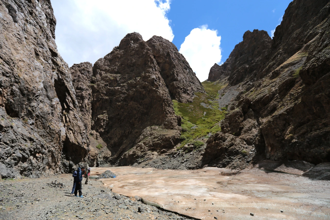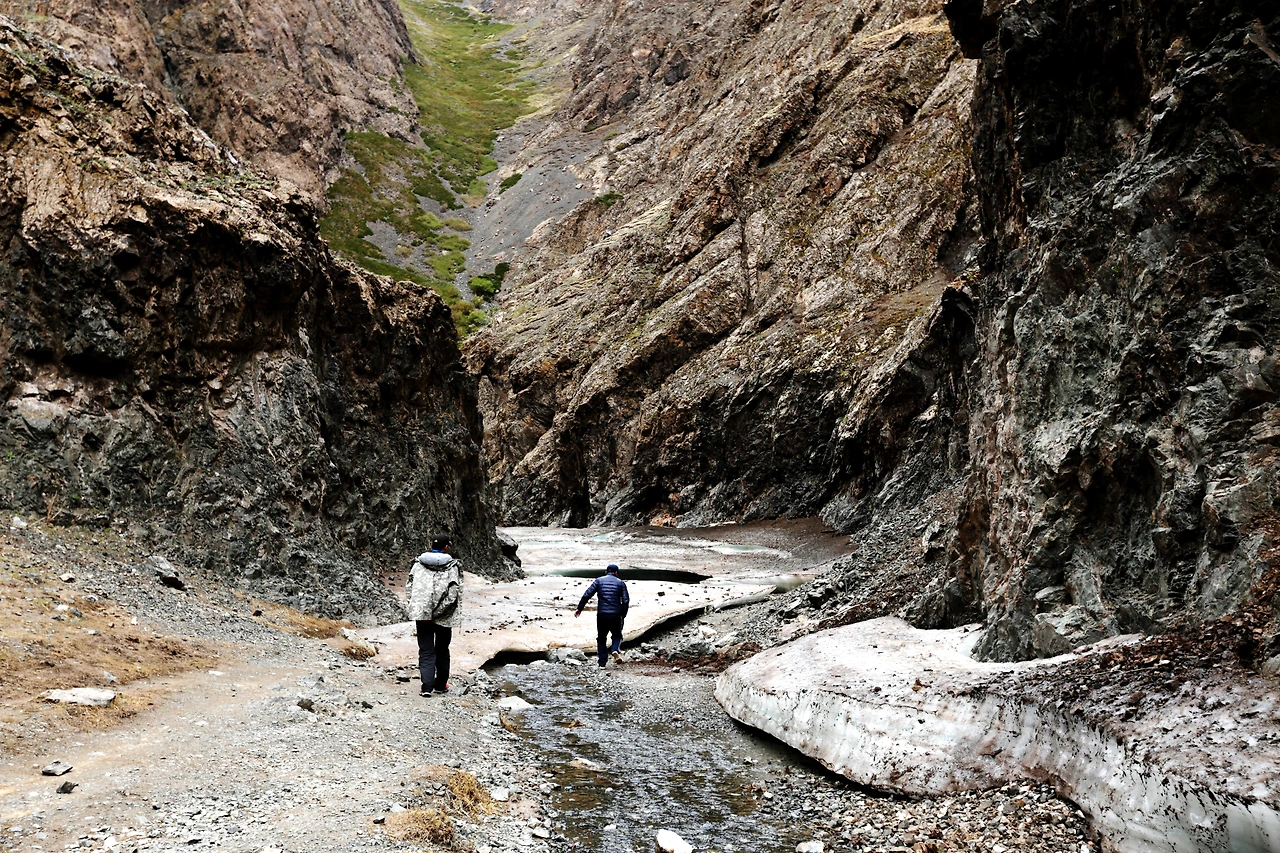 얼음 녹은 물이 녹아 졸졸 흐르는 계곡을 따라서 가다 보면 넓게 펼쳐진 초원이 나타나는가 하면 좁고 험한 계곡들이 한 동안 계속된다. 그러다가 마주친 마치 빙하처럼 계곡 아래까지 만들어진 얼음들, 예전에는 계곡 깊은 곳에 조금 남아있었던 얼음을 봤던지라 놀라웠다.