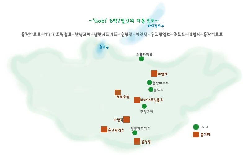 내일은 생명을 앗아갈 정도로 혹독하거나 두려우면서도 한없이 풍요롭고 자비로운 위대한 자연과 더불어 살아왔던 유목민들의 땅 고비를 떠난다.