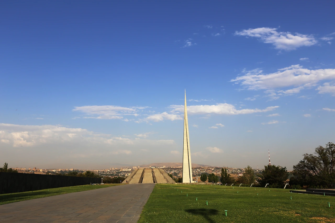 수도 예레반에 있는 제노사이드 추모비, 아라랏산을 모티브로 한 조형물로 왼쪽은 국내아르메니아인들을, 오른쪽부분은 외국에 거주하는 아르메니아인들을 상징한다.