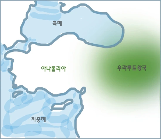 녹색으로 칠해진 곳이 우라루트왕국의 위치이다.