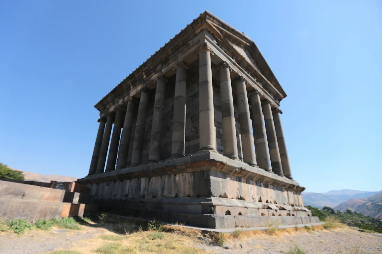 가르니 신전은 아짜트 계곡 Azat Valley 위에 로마의 지배를 받던 BC 1세기경에 태양신 헬리오스에게 바치는 신전으로 건축되었다. 17세기에 지진으로 무너진 것을 1949년 복원한 것이다. 4세기 기독교 공인 이후에는 시원하고 경치가 좋아 아르메니아왕가의 별장으로 사용된 곳이라고 한다.
