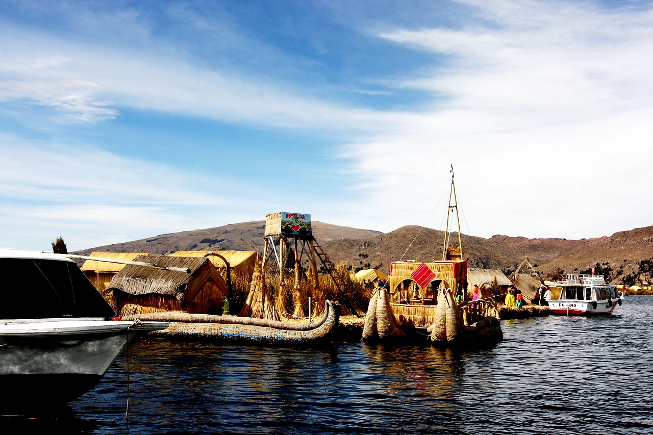 갈대들 사이로 새들이 보인다. 어느 지역이든지 물에서 생활하거나 수상가옥을 주거지로 갖고 있는 이들은 대부분 이런 저런 이유로 인해서 다른 곳에서 이주해 온 사람들이다. 호수에서 자생하는 거친 갈대를 이용하여 만든 인공섬인 우로스는 갈대가 많이 자라는 항구 가까이 위치하며 학교, 교회, 마켓 등을 포함하여 약 40여 개에 섬에 달한다.