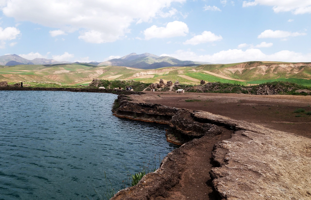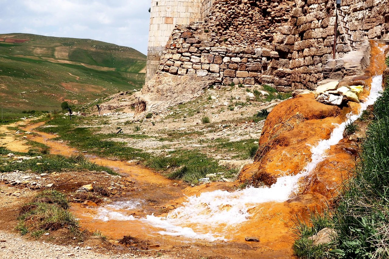 이곳은 페르시아 사산왕조 시절인 3세기 조로아스터교의 중심지였으며 온천수가 솟아나오는 화산의 분화구에는 지금도 샘물이 솟아나는 크레이터 레이크로 지름이 30m 정도의 넓은 호수엔 맑은 물이 넘실대며 양 쪽 성 밖으로 콸콸 흘러나간다.