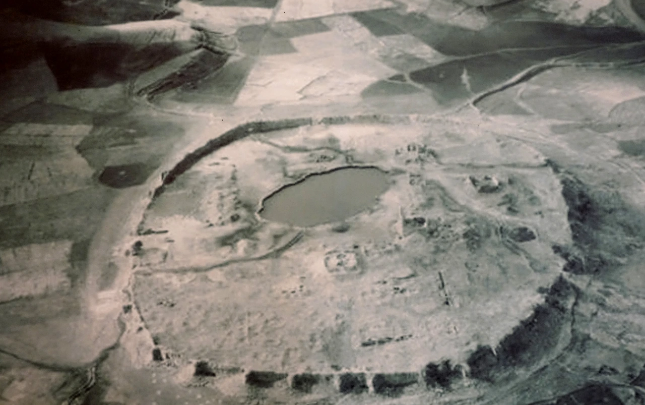 탁테 솔레이만으로 가는 길/ 탁테 솔레이만 건축물들의 폐허 하늘에서 찍은 탁테 솔레이만의 성채와 호수/ 밖으로 흘러 나가면서 항상 같은 수량을 유지하는 크레이터 호수의 물