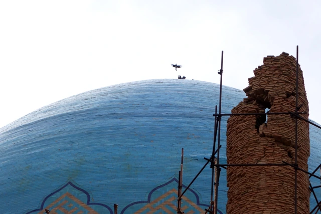 외벽의 화려함은 사라졌지만 여전히 장엄한 술타니예 돔 엄청난 크기의 돔을 자세히 들여다보면 파이앙스 채색타일로 장식하였다/ 술타니예 돔 옆의 시설물들의 폐허