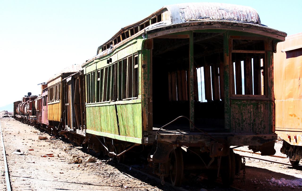 고원을 헤매다 보니 벌써 칠레로 넘어가는 국경이다. 황량한 기찻길 너머가 칠레란다. 저만치 보이는 기차는 레일에 서 있으니 달리는 기차일 텐데, 생명을 다한 듯 낡아있다.