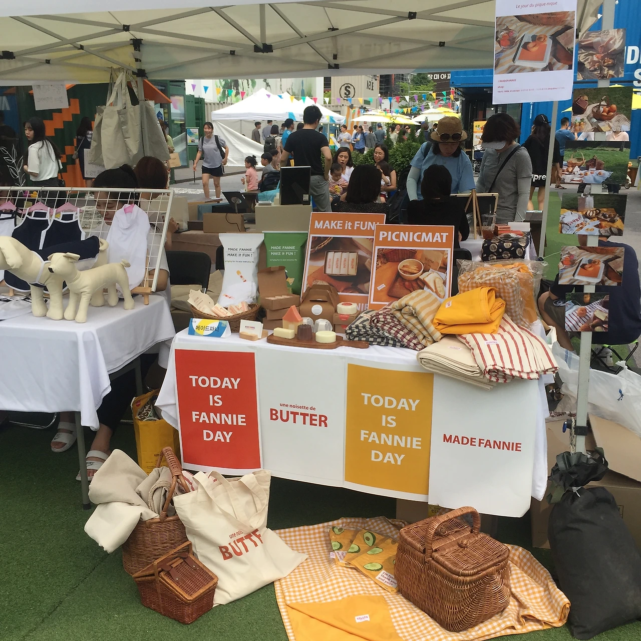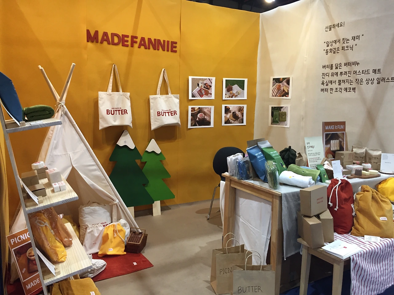 맨 처음 팝업은 가로세로 500cm의 정사각형 작은 네모난 테이블이었다. 그 테이블 위에 버터 비누와 캔들을 올려두며 손님을 기다렸었다. 500cm의 테이블도 너무 커서 가득 차보이려고 가져온 제품들을 몽땅 테이블 위에 올려놔 쌓았었다. 그렇게 테이블이 두 개가 되고 , 600 ,1200 cm ,,, 크기가 점점 늘어났다.