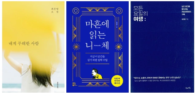 내가 고를 차례는 3번째. 이미 앞에 두 사람이 책을 골라갔고 나의 선택권은 세 권 중 하나였다. 내게 무해한 사람, 마흔에 읽는 니체, 모든 요일의 여행. 누가 무슨 책을 가지고 왔는지 도무지 알 수가 없었다. 그래서 더 재미있는 것일지도. 아무튼, 고민 끝에 마흔에 읽는 니체를 선택했다. 최근에 나갔던 독서 모임에서 철학에 대한 스스로의 무지함을 느꼈기 때문에 철학을 읽어봐야겠다고 생각한 시기였다. 여자들의 책이 모두 선택되고 나서 드디어 남자들의 책이 공개되었다. 누가 가져왔을지 모를 책을 선택하는 것보다 내가 가져온 책을 누가 선택할지가 더 떨리는 것 같았다. 그래서, 내가 가져온 인생책은 뭐였냐고?