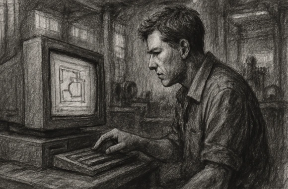 제조반 직원의 절반은 수작업, 절반은 C&C 작업을 했다. 수작업을 하시는 분들 역시 대단한 장인이셨다. 개중에는 의외로 나이가 어린 직원들도 있었는데, 아버지는 그들과 친하게 지내라는 지시를 내렸다. 지금 젊은 친구들이 이 회사의 미래에도 쭉 함께 할 거라고. 제조반 구역의 중심에는 오래된 PC가 한대 놓여 있었다. 윈도우도 아닌 DOS가 돌아가고 있었다. M.exe 단순히 상징인가 싶었는데, 나이 많은 직원 분들이 종종 도면을 들고 그 PC에 가서 무언가를 메모하고 돌아가셨다. 저건 뭐예요? 저거? 우리 회사의 핵심 중 하나인 프로그램이지. 뭐 하는 건데요? 계산기 같은 거야. 우리 제품에게만 적용되는 값을 알려주는 것이지. 우리 제품에만 적용된다고요? 코드 봐도 돼요? 봐도 모를걸. 어디서 파는 건가요? 아니, 사장님이 만드셨어. 네 아버지는 뛰어난 기계 공학자이자 수학자이거든. 컴퓨터도 잘 다뤄. 화학도 잘하셔서 우리 회사 열처리 기술도 사장님이 처음 만드셨지. 아버지가 코딩을 하셨다니. 전혀 몰랐다. 그나저나 아버지가 이런 먼치킨이었다고? 직원들의 존경을 받는 아버지가 생경했다.