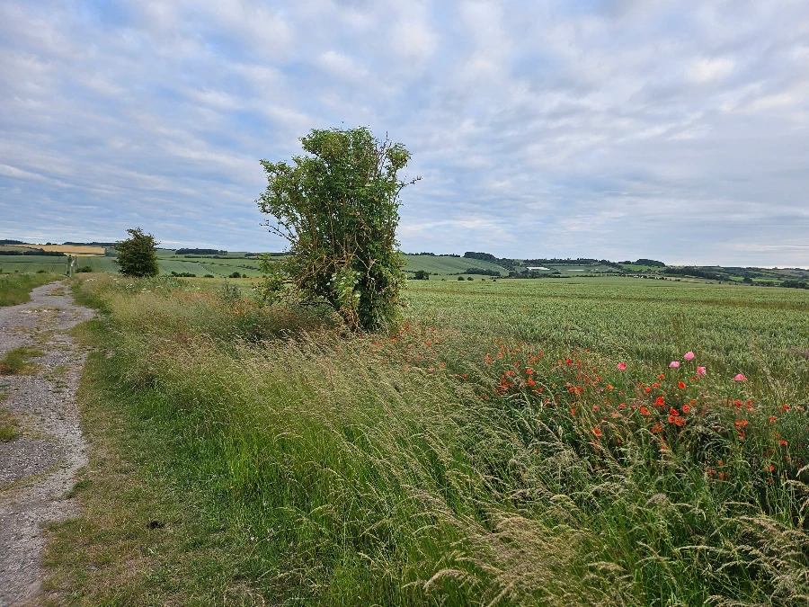 비 오는 시간을 피해 달리기에 성공하면 기분이 상당히 좋다. 시골 살아 좋은 점 중 하나는 조깅할 때 보는 자연 풍광이다. 지금은 들판에 스케이비어스와 퍼피 등 들꽃이 너무 예쁜 계절이다.