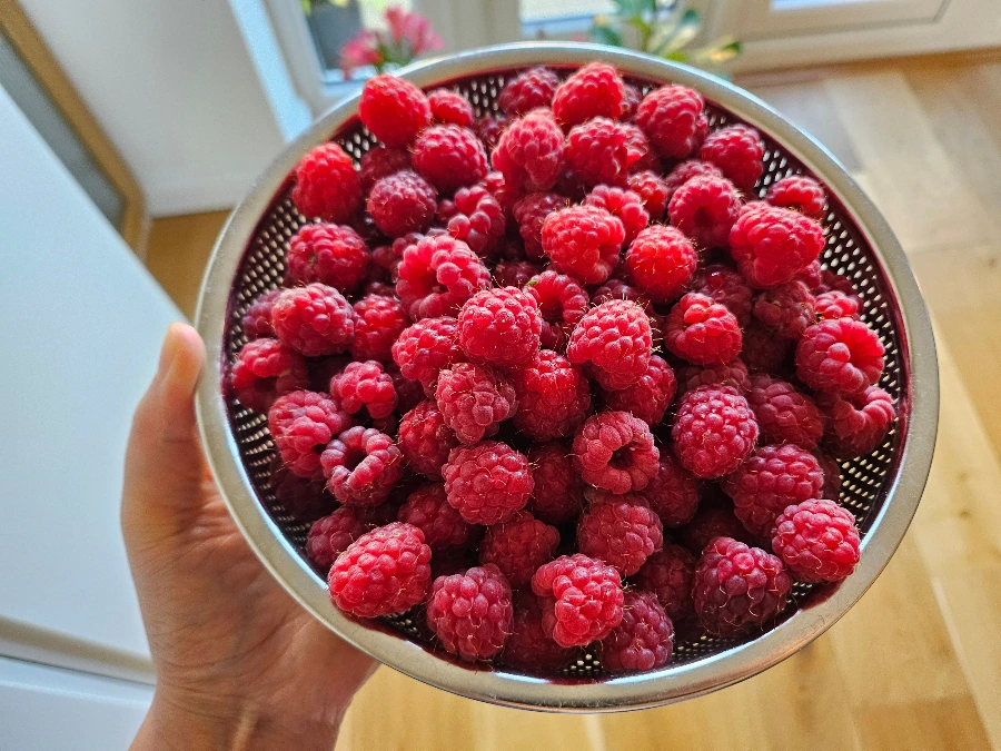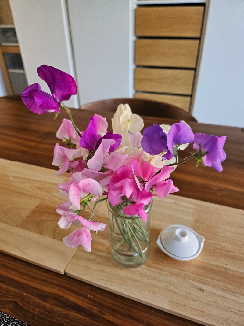 Raspberries and sweet peas from my garden