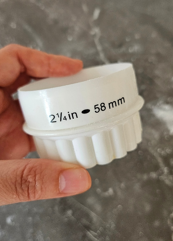 I found that the thickness of 2 cm is up to the flute shape of my cutter therefore you can check the thickness when you cut the dough. To help scones rise evenly, always cut the scones straight up and down without twisting the cutter to the side as this will affect the rise.