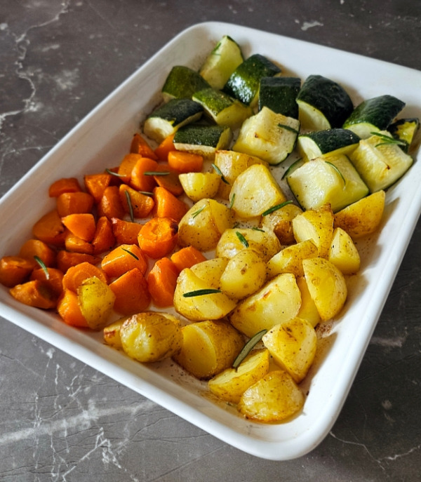 The potatoes and carrots are buttery, and the caramelised onion is sweet and delicious. Fluffy textured potatoes are good for this dish. You can use other vegetables if you like, such as beans or broccoli. Cooking time may need to be adjusted depending on the firmness of the vegetables.