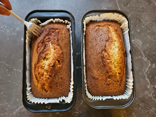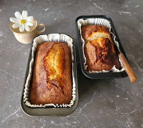 내가 사용한 빵틀은 11.5 cm x 21.5 cm 사이즈의 로프 틴 (loaf tin)이다. 꼭 같은 사이즈의 케이크 틴으로 사용할 필요는 없고, 이 정도 사이즈의 틀에서 만들었을 때 이렇게 나온다고 참고하면 좋을 것 같다. 베이킹 라이너 없이 굽는다면, 케이크가 달라붙지 않도록 로프 틴에 충분히 버터를 발라줘야 한다.