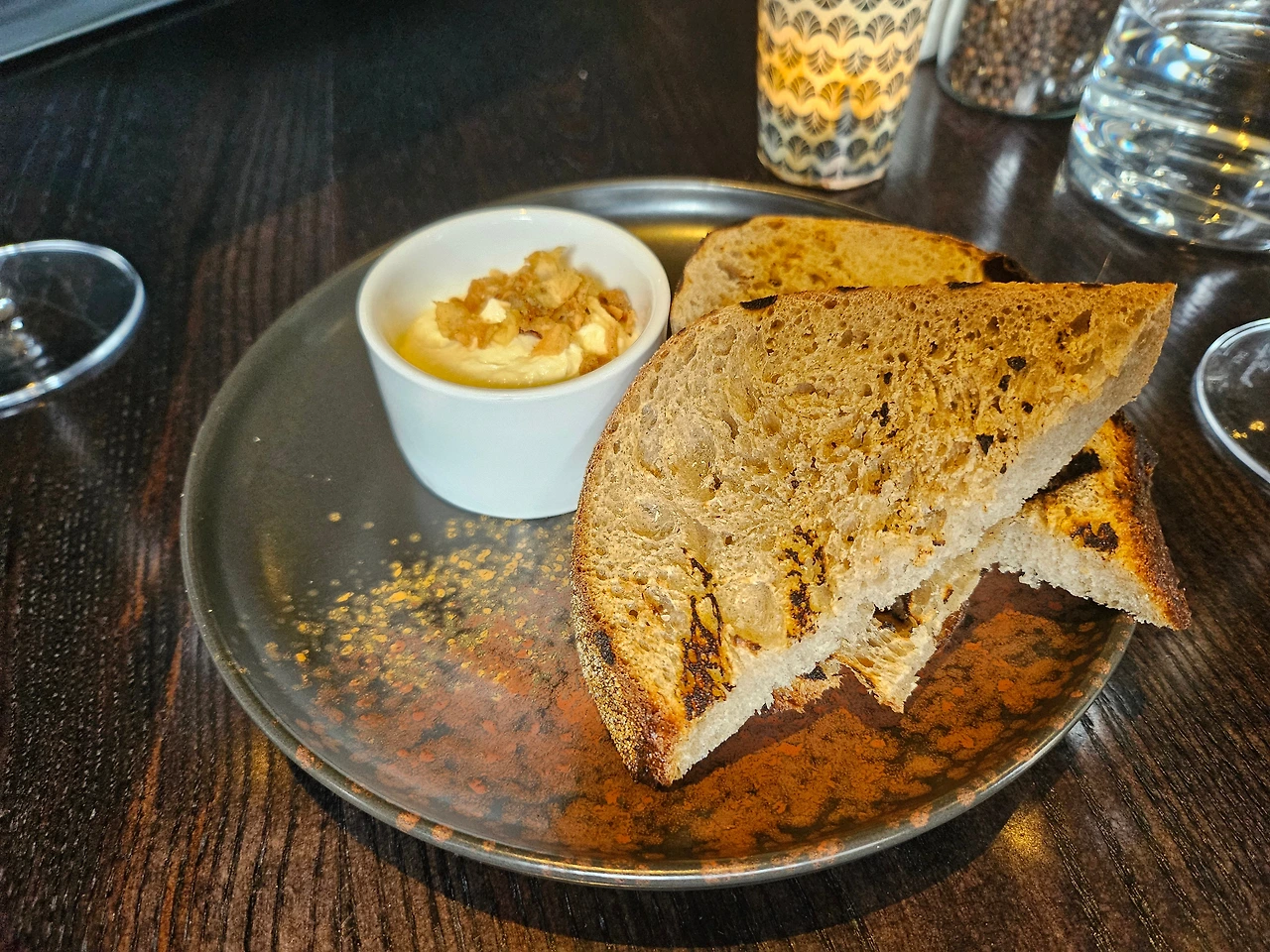 나는 분명히 배가 안고팠는데.. 시작부터 스타터로 오징어 굽듯 구워져 나온 빵과 정성 들인 버터의 황금 조합에 찐~한 갬동을 받았다.